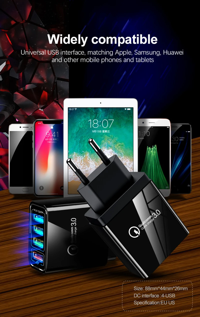 Портативное настенное зарядное устройство для iPhone, планшета, ПК, телефона Xiaomi, USB зарядное устройство, быстрая зарядка, 3,0