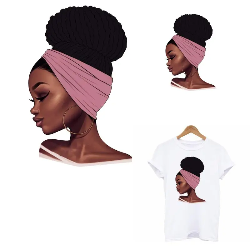 Красивые африканские женские термонаклейки на одежду, Термотрансфер...