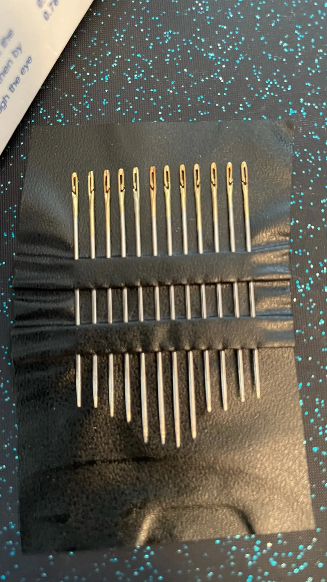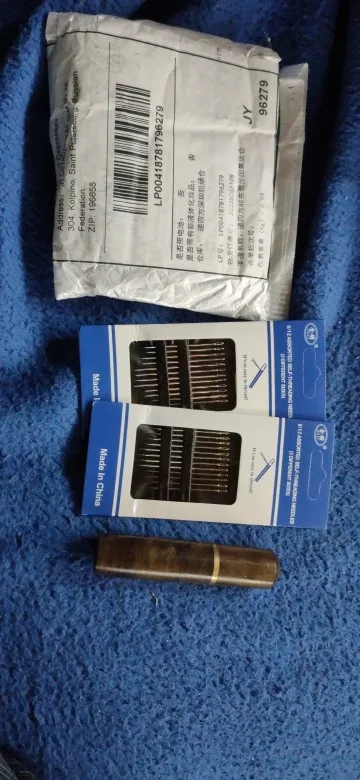 Неплохие по качеству иглы. По фото думал что будут совсем огромные, но нет, обычные, самые ходовые. Материал упругий, не гнутся просто так. Посмотрим на сколько такая форма ушек износостойкая, но пока впечатления сугубо положительные. На фото линейка в сантиметрах