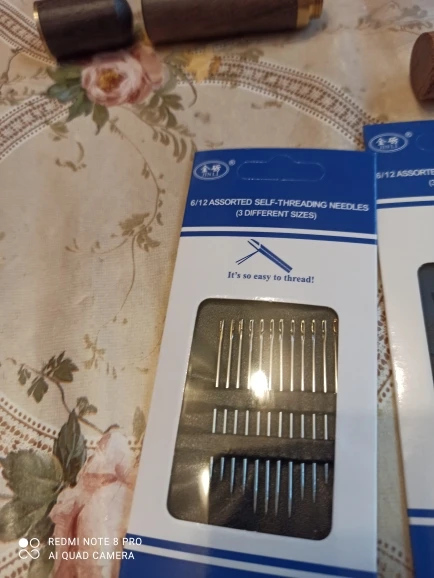 Нитка вдевается моментально. Шить не пробовала еще, но не думаю, что будут проблемы. Покупала маме, думаю и себе тож заказать, чтоб не ковыряться с вдеванием)))) Кстати, и ушки достаточно большие. Отмечу аккуратную упаковку. Когда сделала фото, только тогда заметила, что ушко одной иголки сломано....