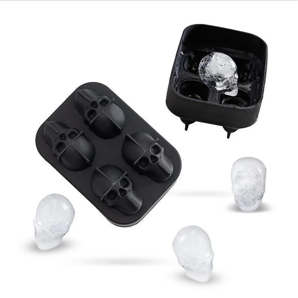 Силиконовая форма для льда с 3d-черепом, форма сделай сам для приготовления льда, 4 полости, без бисфенола А, для кухни, бара
