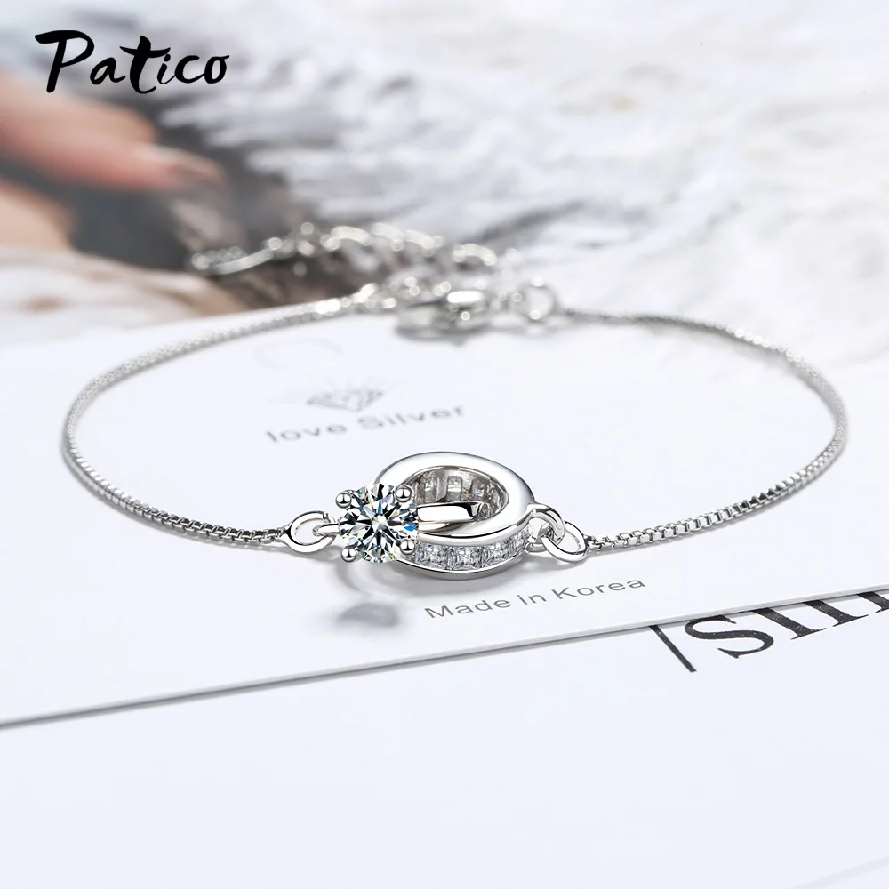 Женский браслет из чистого стерлингового серебра 925 пробы с белым ...