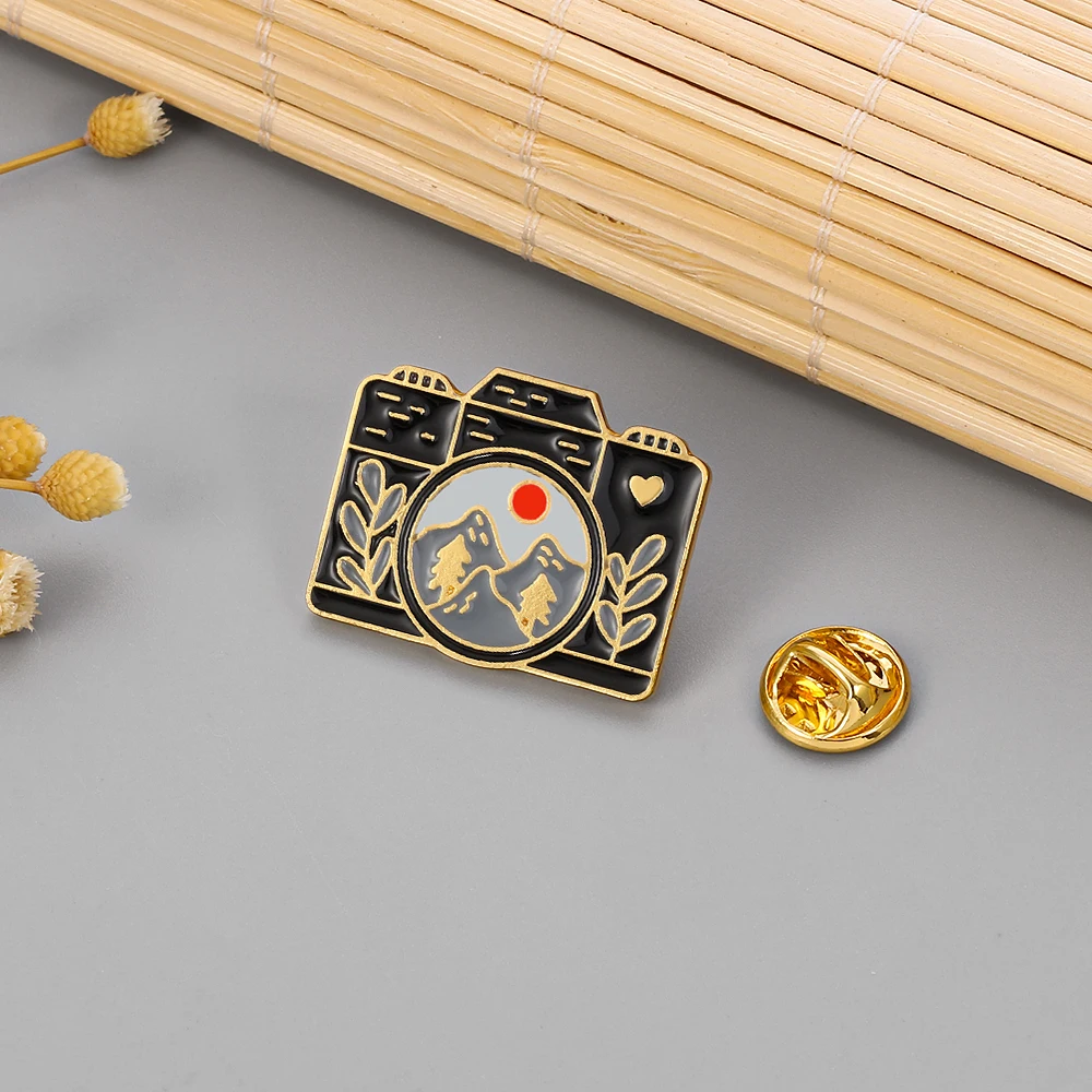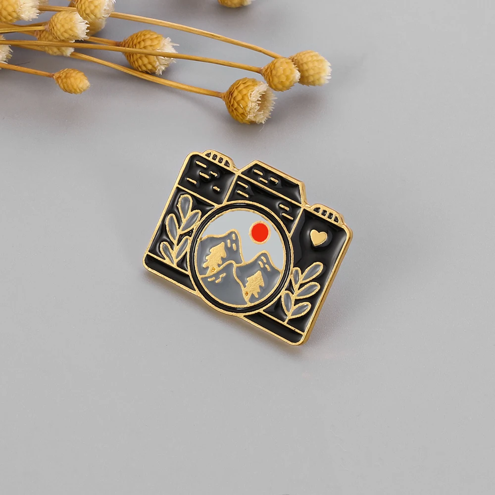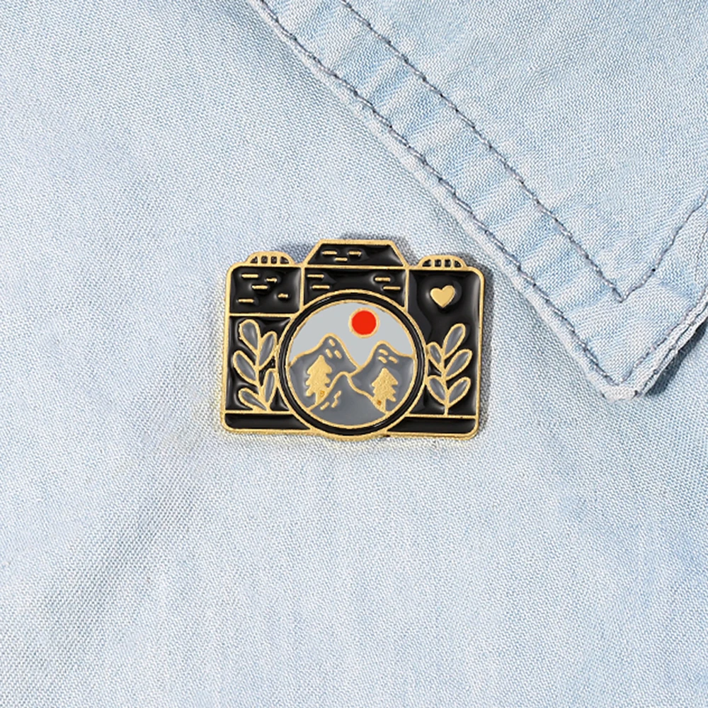 Забавная камера эмалированная брошь путешествия горный пик восход солнца сплав значки одежда сумка аксессуары ювелирные изделия подарок