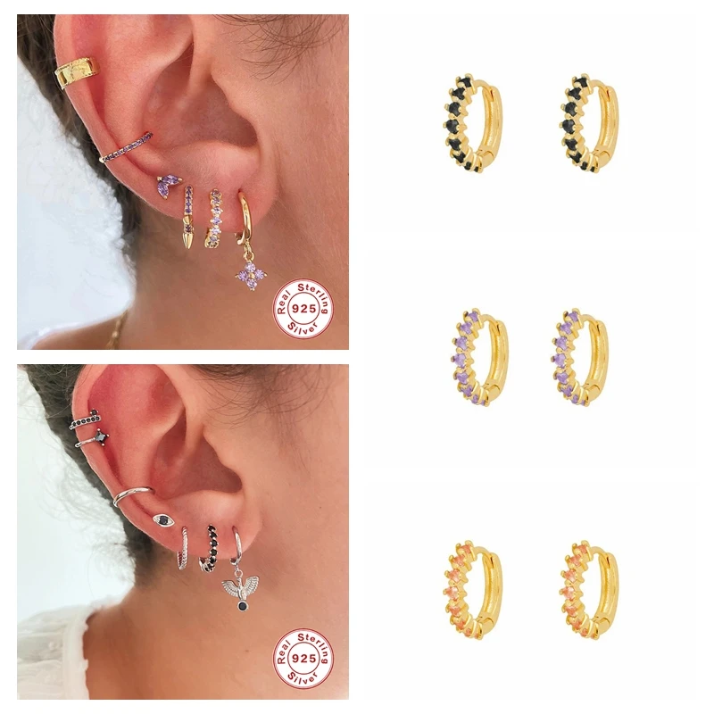 Женские серьги-кольца из стерлингового серебра 925 пробы с радужным цирконием, серьги-кольца, ювелирные аксессуары
