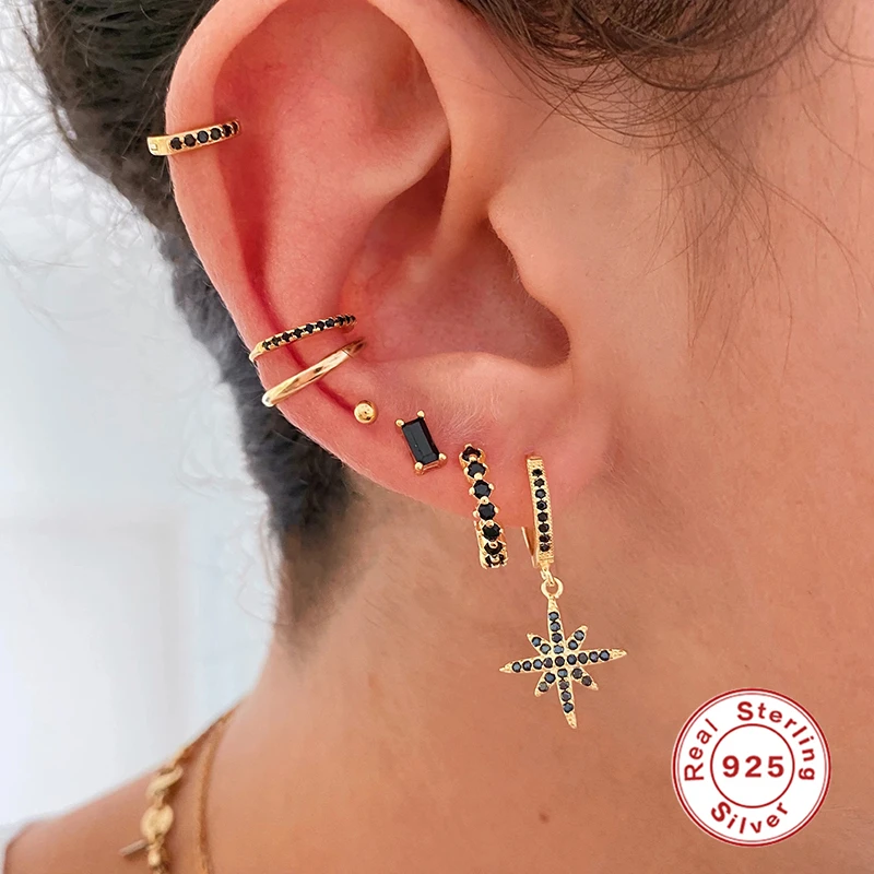 Aide 925 Серебро четыре в виде пятиконечных звезд, серьги со шпильк...