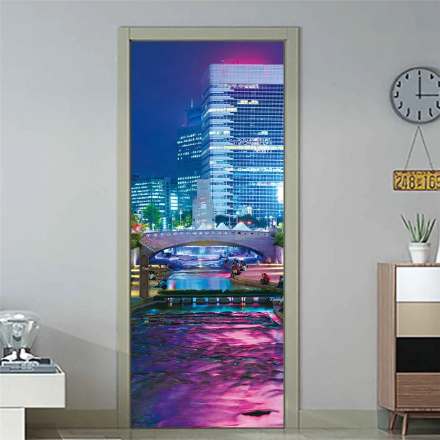 Современные городские 3D обои ночного вида, дверные наклейки, самок...
