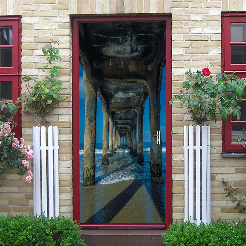 Настенные 3D-наклейки на дверь, Настенные обои с изображением моря,...