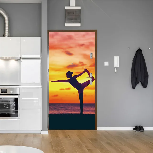 Европейский стиль ПВХ водостойкая дверная наклейка s обои для гости...