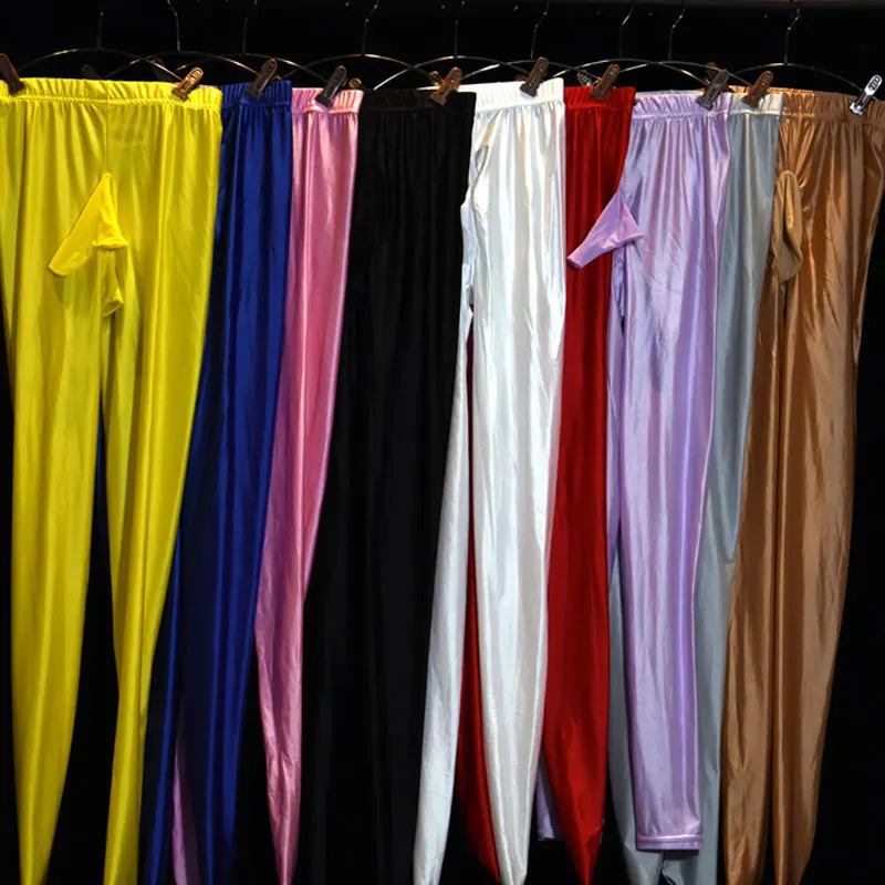 Пикантные мужские обтягивающие блестящие Блестящие Брюки с U-образным мешочком, брюки с открытым закрытым рукавом, яркие цвета размера плюс 32