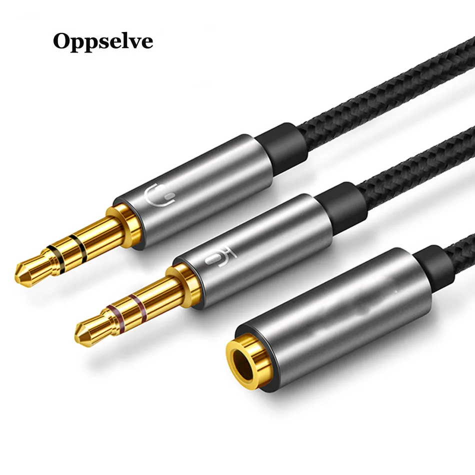 Разветвитель Oppselve для компьютера, 3,5 мм, с женской на 2 штекера, 3,5 мм, микрофон, аудио, Y-образный кабель, гарнитура, адаптер для ПК, ноутбука