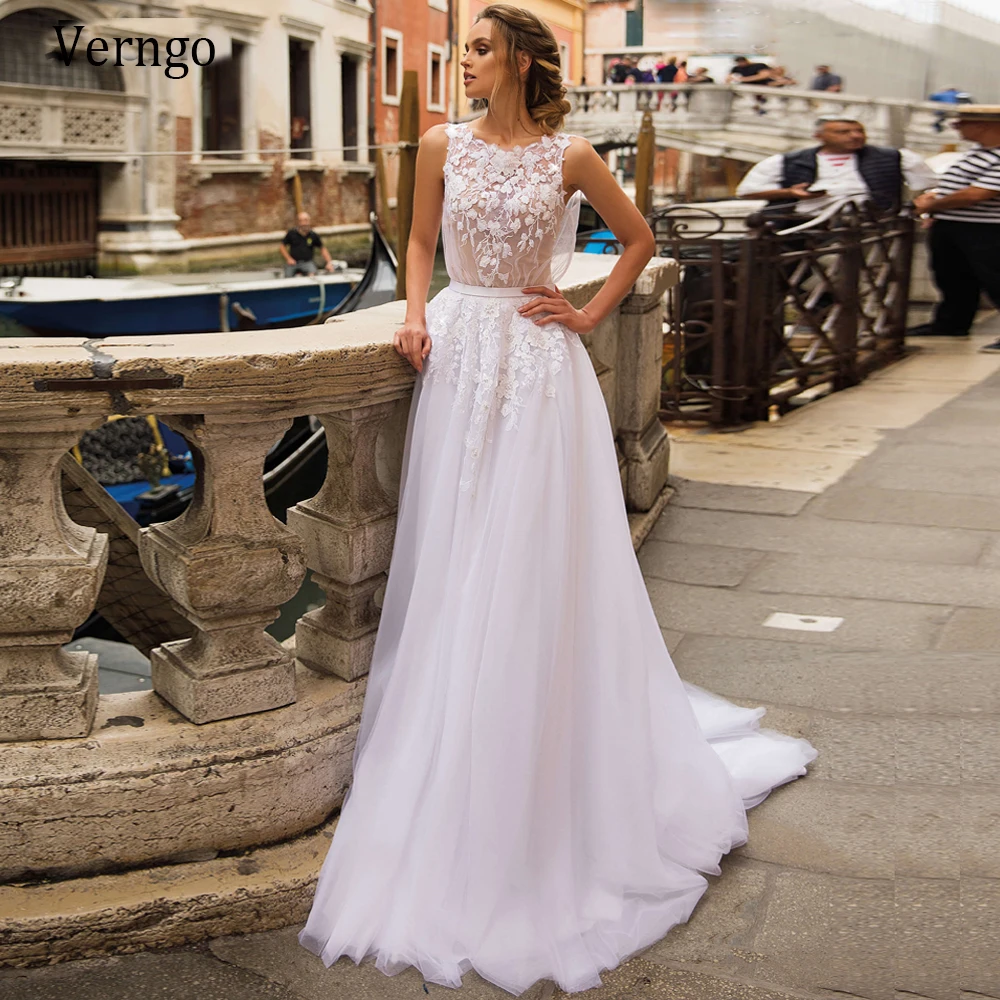 Элегантное свадебное платье Verngo в стиле бохо, 2020, кружевные 3D цветочные аппликации, юбка Тюлевое платье невесты, романтичные Изящные трапециевидные свадебные платья