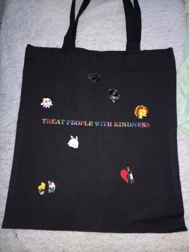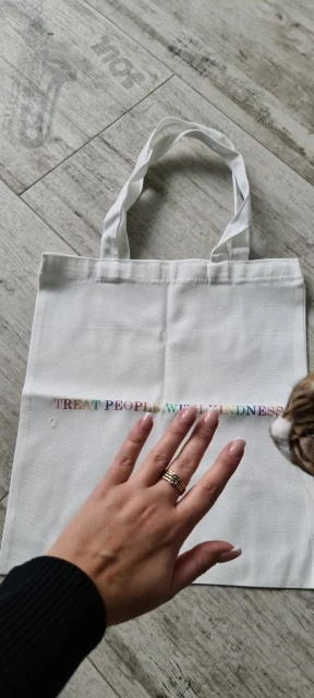 шопер просто крутыш,но кажется надпись на нем долго не продержится;(так же есть небольшие,торчащие нитки,но это некритично я на таком не зацикливаюсь.мне нрав