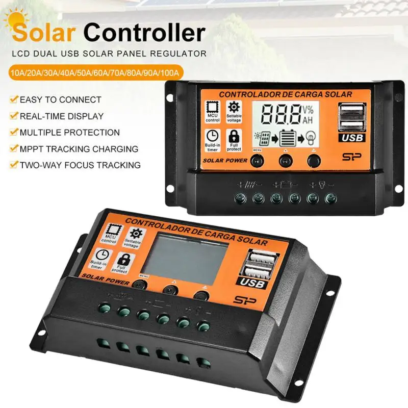 Система солнечных панелей, с контроллером зарядки 10А, 20А, 30А, 40А, 70А, 100А, автоматическая, с разъемом USB, с ЖК-дисплеем PWM, с регулятором зарядки