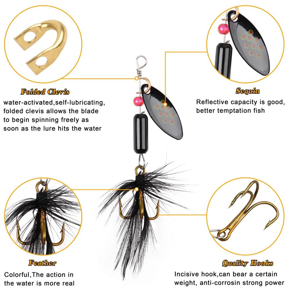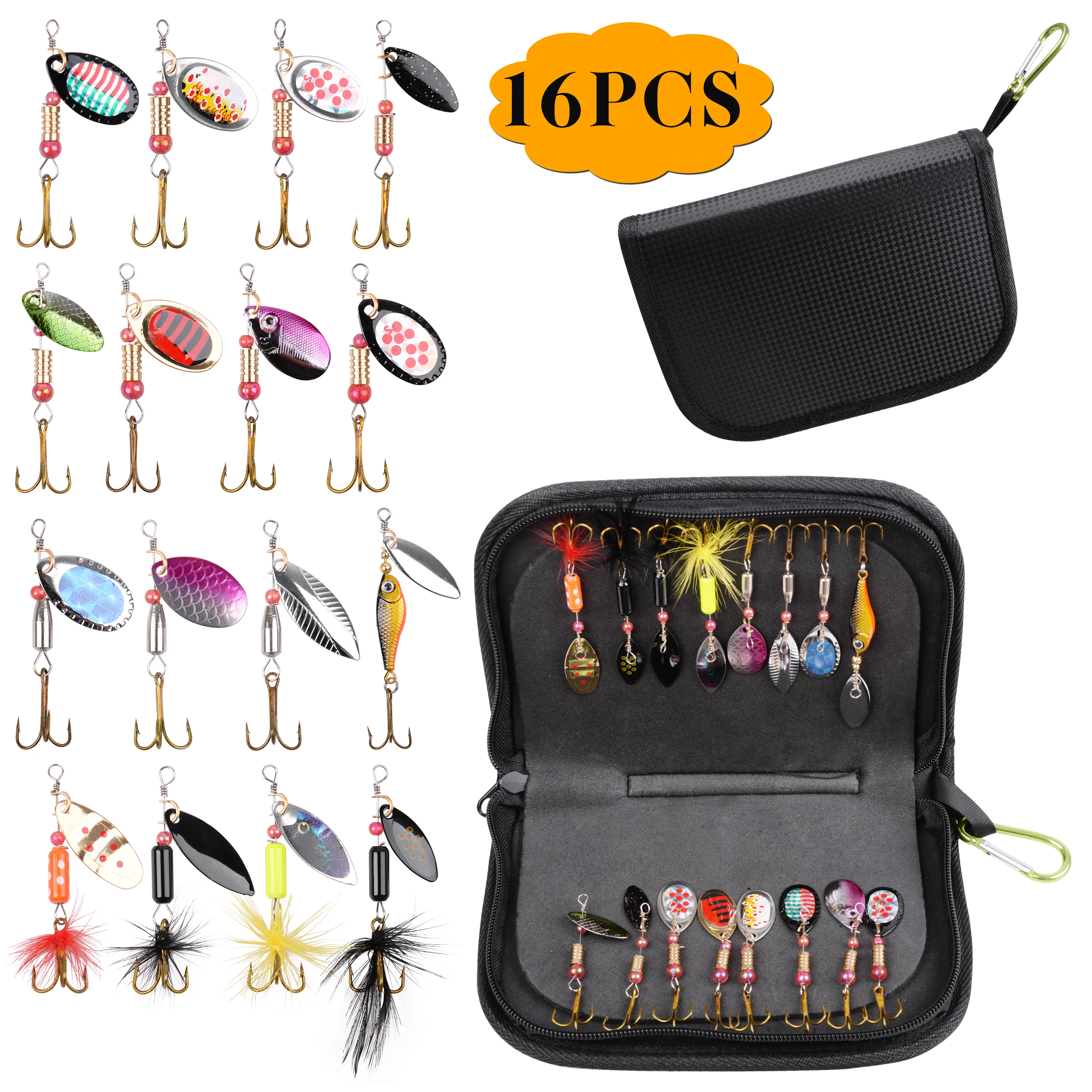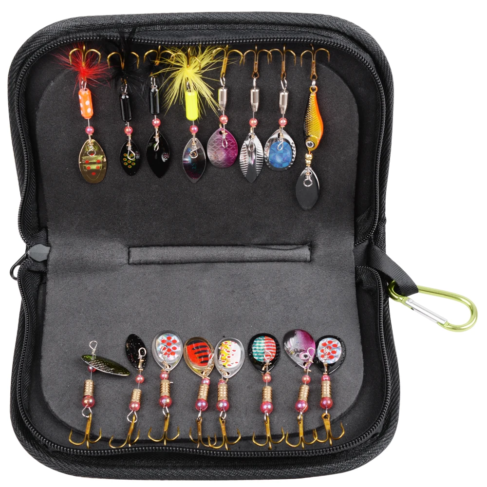 16 шт.пакет рыболовные приманки для бас-гитара блесна приманка с Портативный сумка для переноски приманки для ловли форели приманки улова, Металлические Блесны комплект