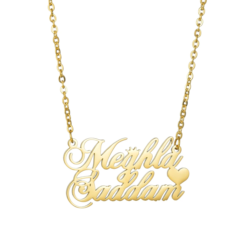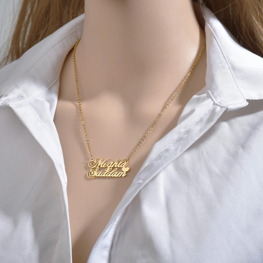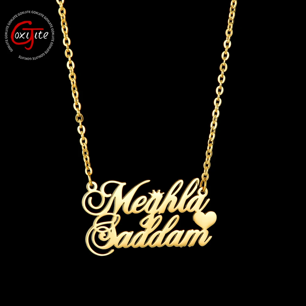 Goxijite индивидуальные двойное имя Сердце ожерелье для женщин Персонализированные из нержавеющей стали 2 имени кулон ожерелья Пара подарок