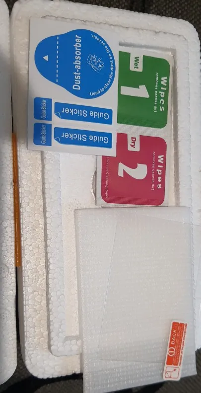 претензий нет, всё отлично, упаковано в пенопласт - очень надежно, в комплекте салфетки для обезжиривания и стикеры для сбора пыли