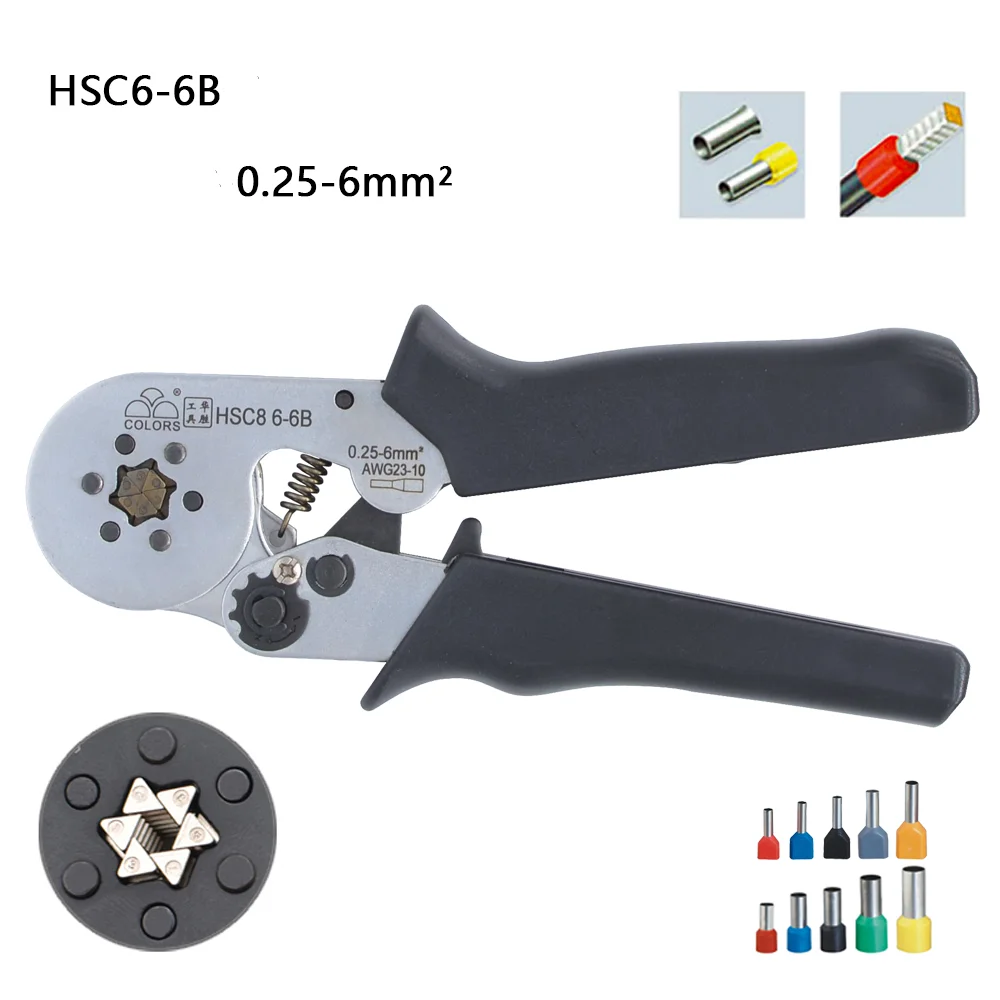 Инструмент для обжима наконечников AWG23-10, 0,25-6 мм2, обжимные втулки для проводов HSC8 6-4