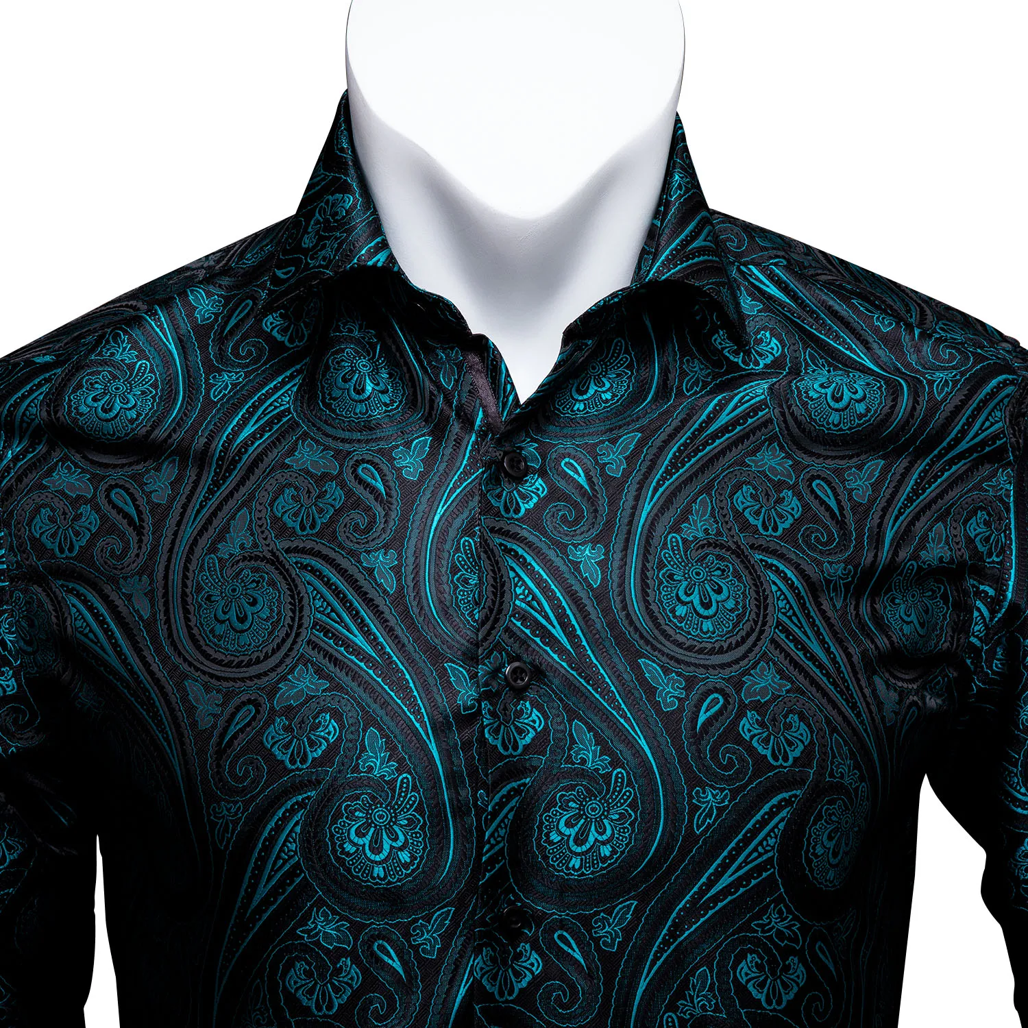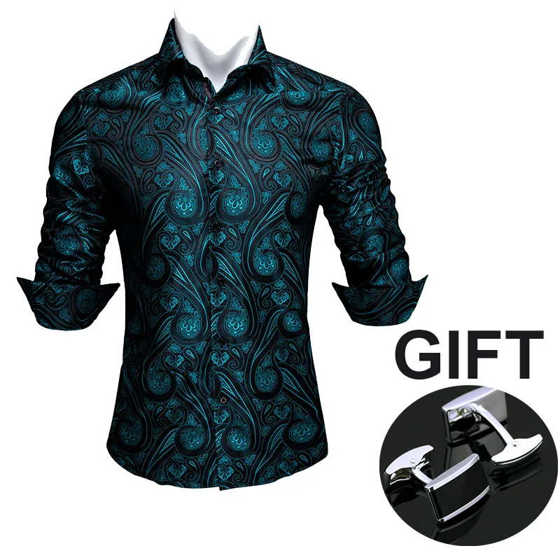 Мужские шелковые рубашки Barry.Wang, темно-бирюзовые повседневные р...