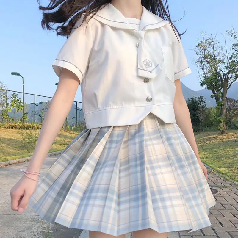 Летняя плиссированная клетчатая юбка с высокой талией для девочек, японская школьная форма Jk, платья, Милая привлекательная мини-юбка трапециевидной формы для студентов и Косплея