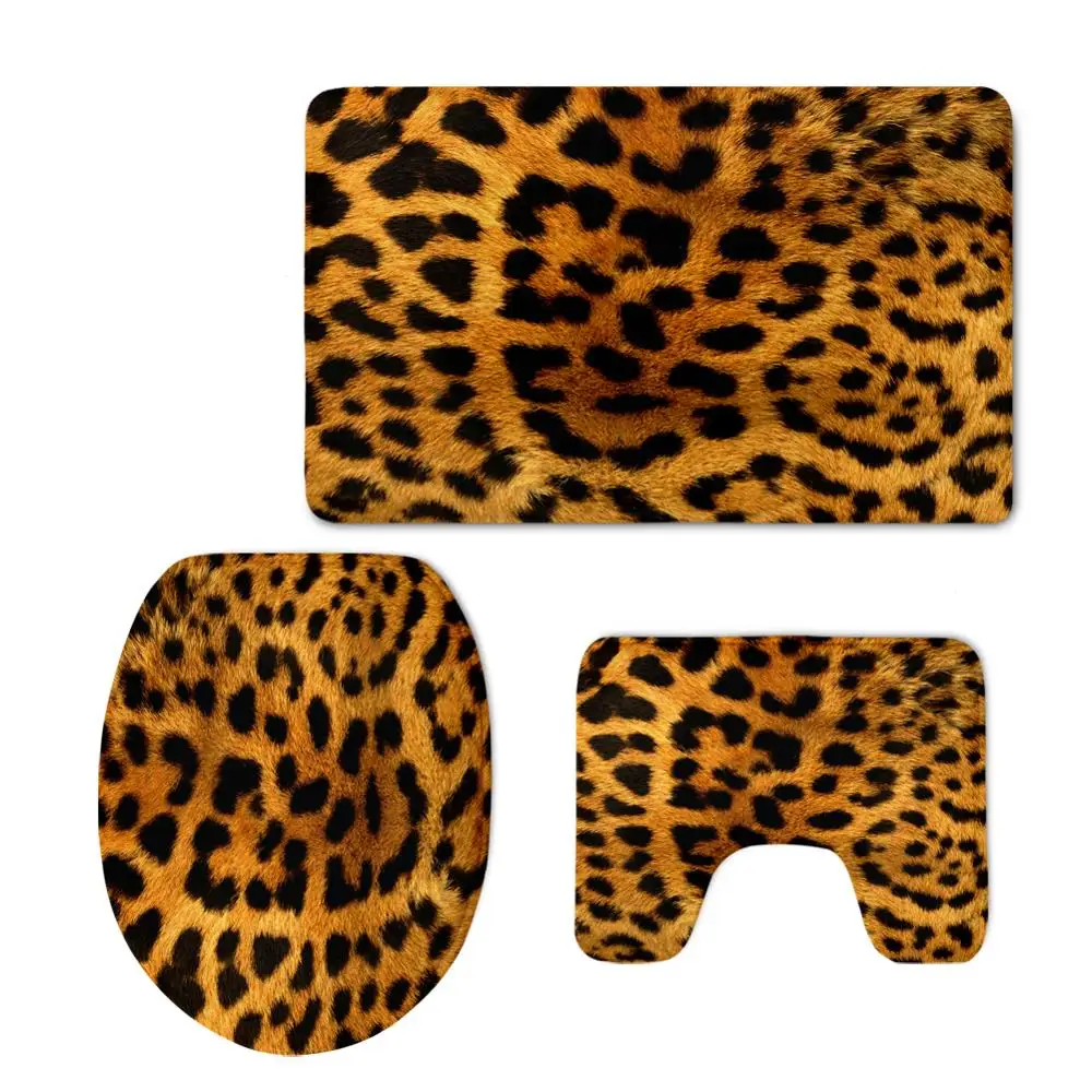 Мягкие фланелевые Контурные коврики для ванной, набор из 3 модных ворсистых нескользящих ковриков для ванной с леопардовым принтом и U-образных напольных ковриков для туалета