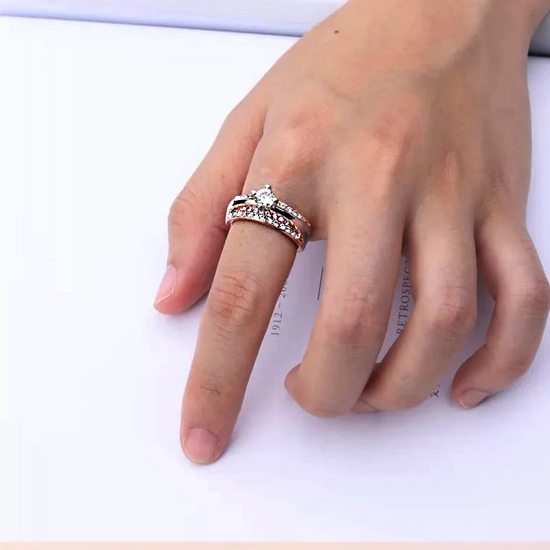 Обручальные кольца из циркония для женщин, 2 шт.компл., цвет розово...