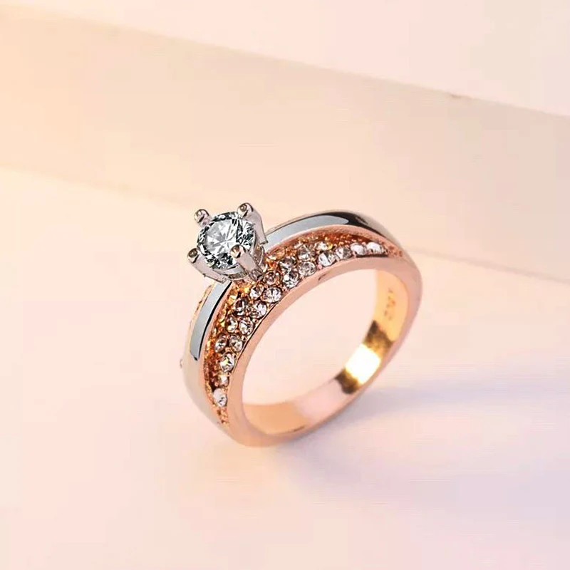 Модное дизайнерское кольцо цвета розового золота с австрийским крис...