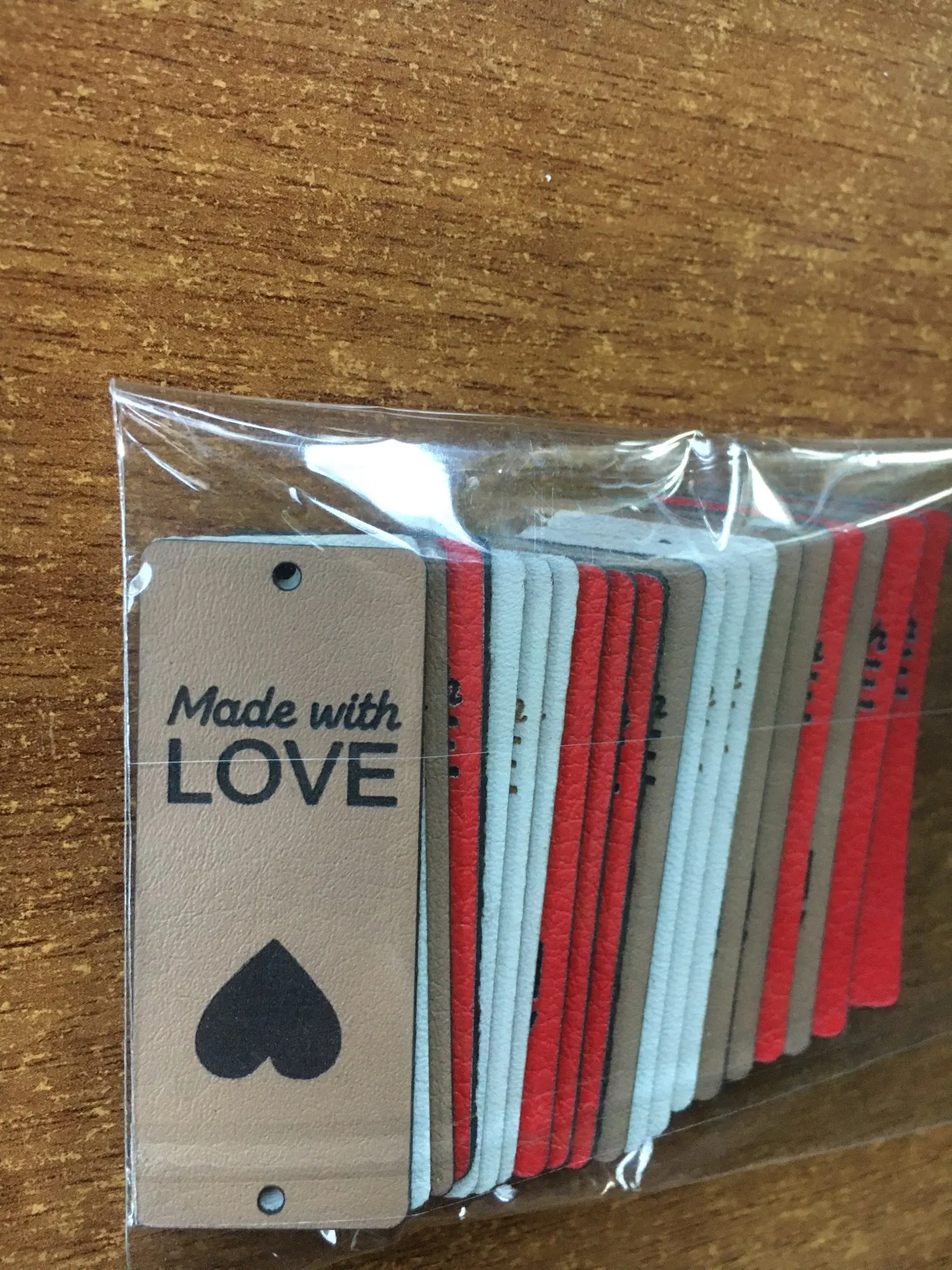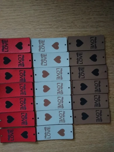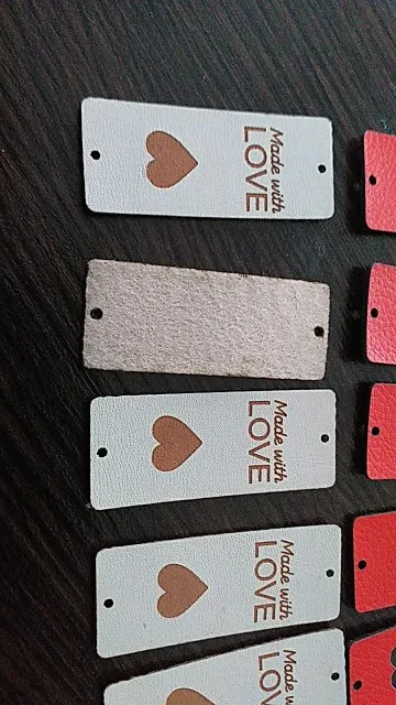 На фото бирки выглядят белыми, по факту-светло-бежевые. Искусственная кожа, боюсь, что после первой стирки потеряют вид.