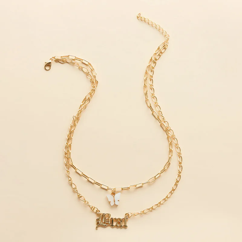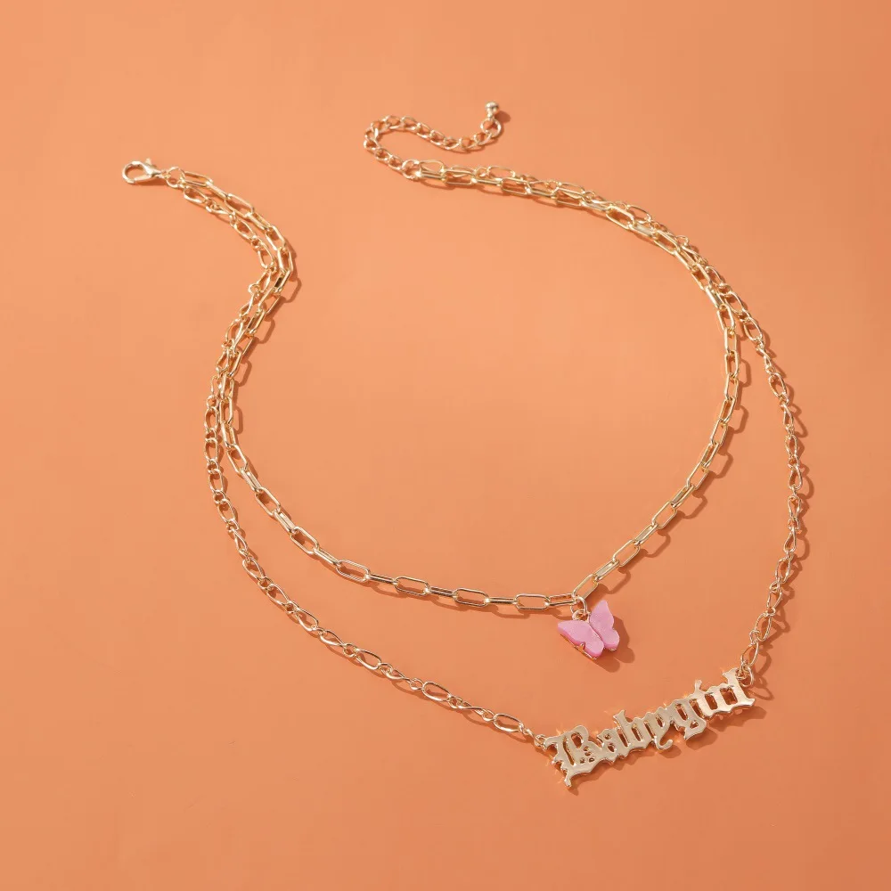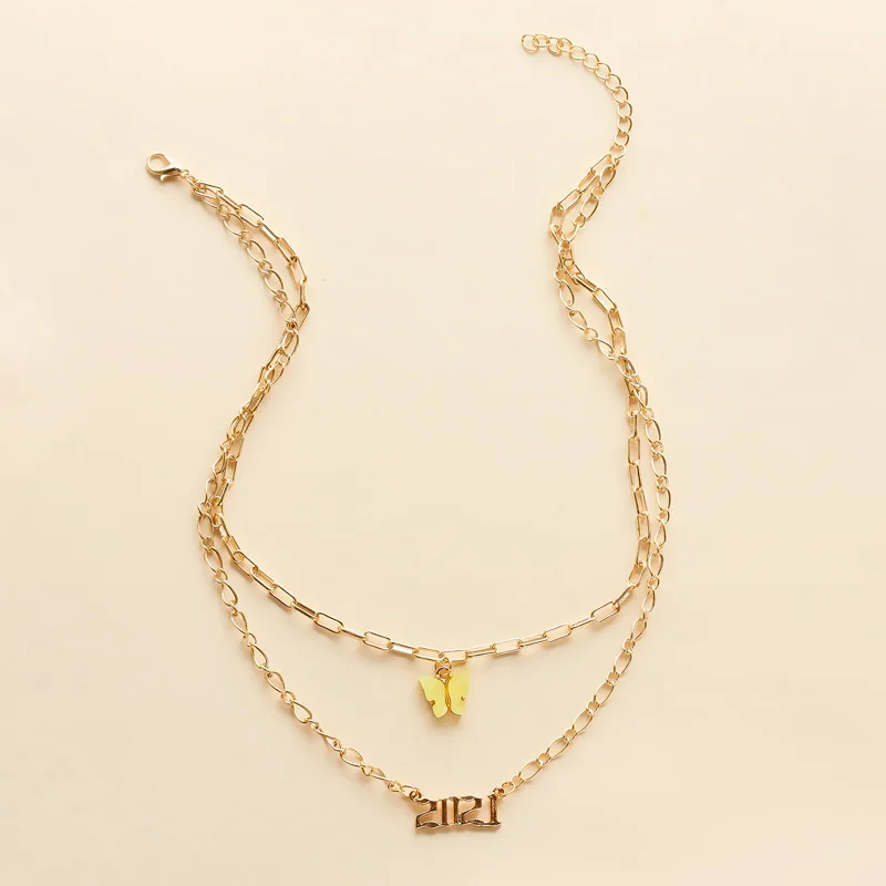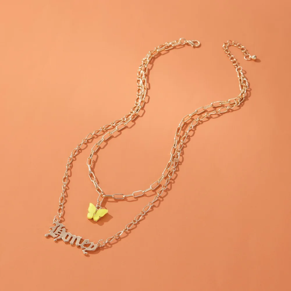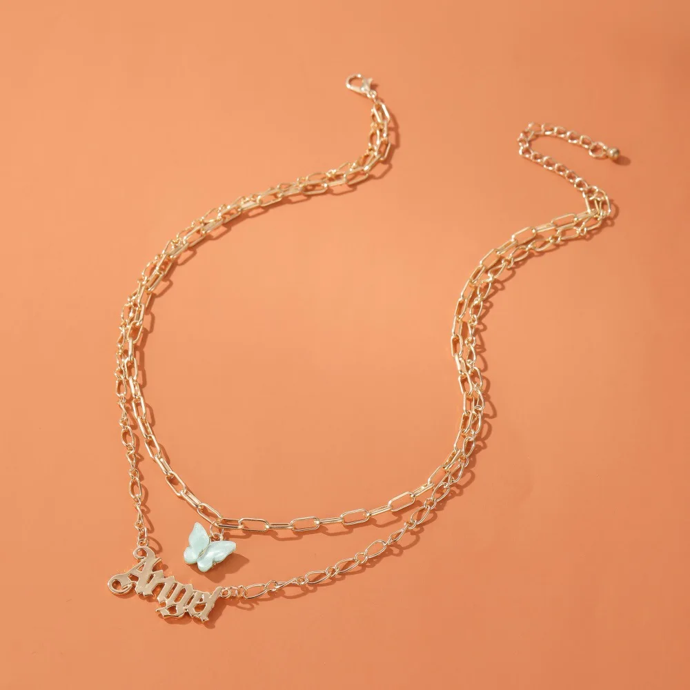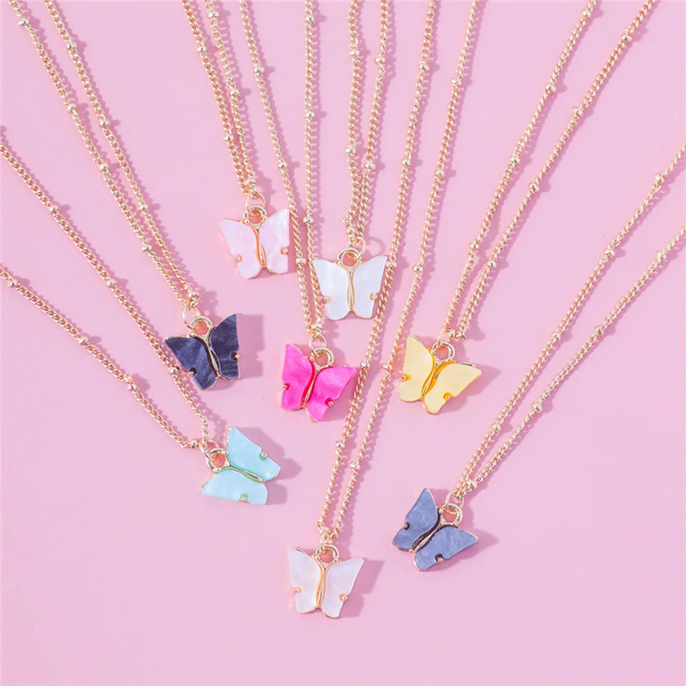 QIAMNI модное многослойное ожерелье для девочек с акриловой бабочко...