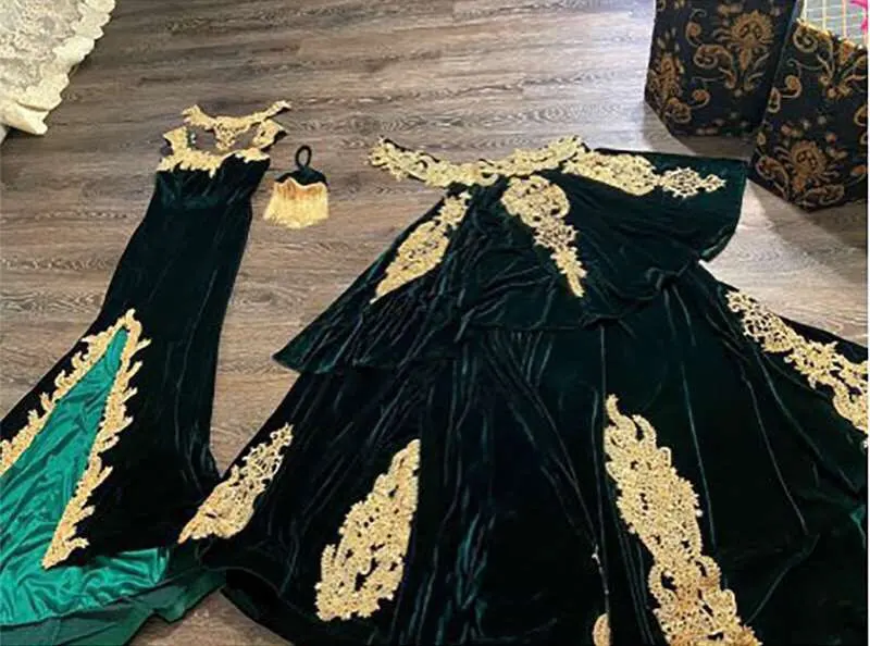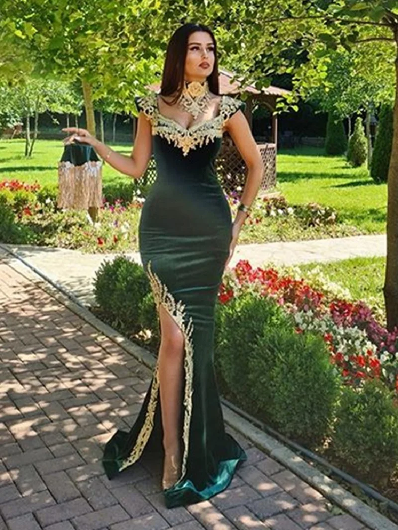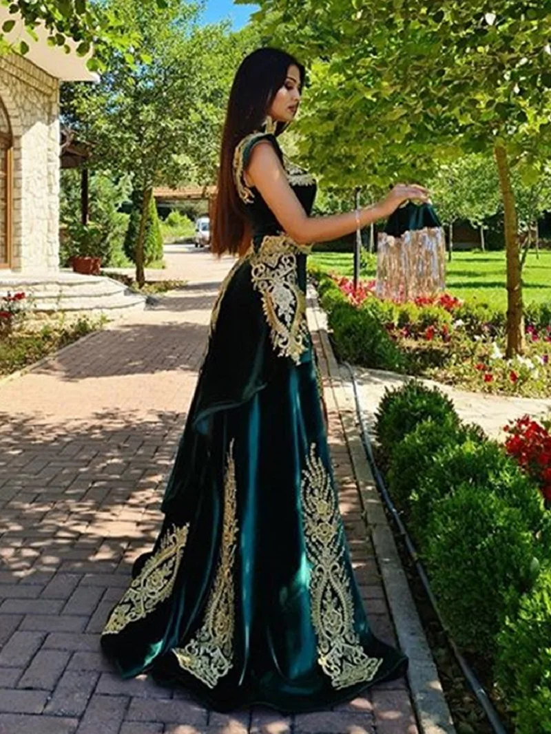 Вельветовое вечернее платье Sevintage, со съемной юбкой, с арабским разрезом, с кисточками, с высоким воротом, аппликация для выпускных платьев