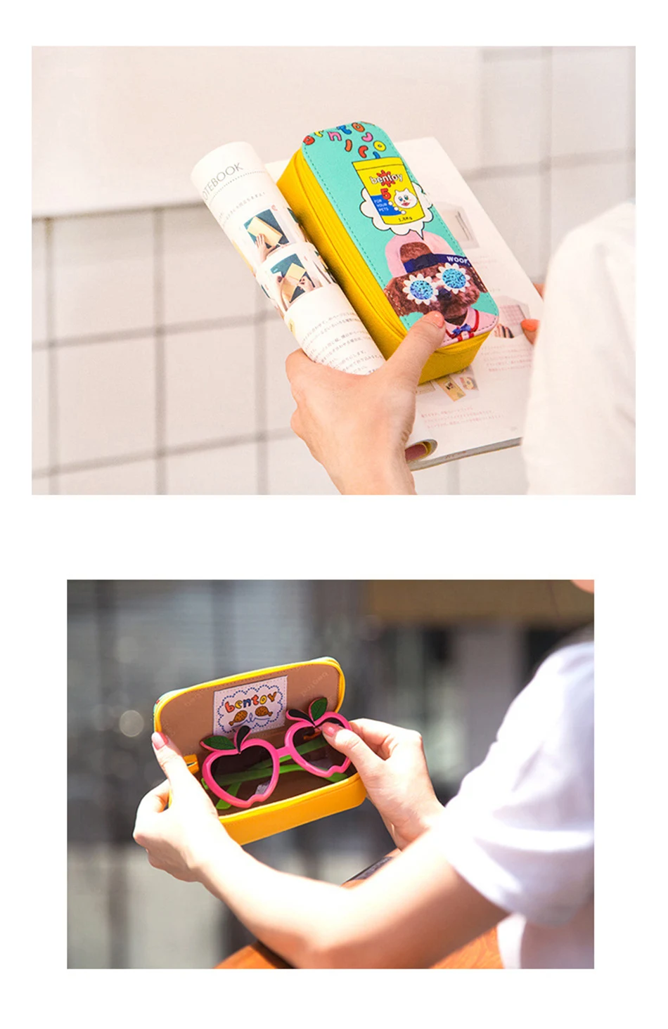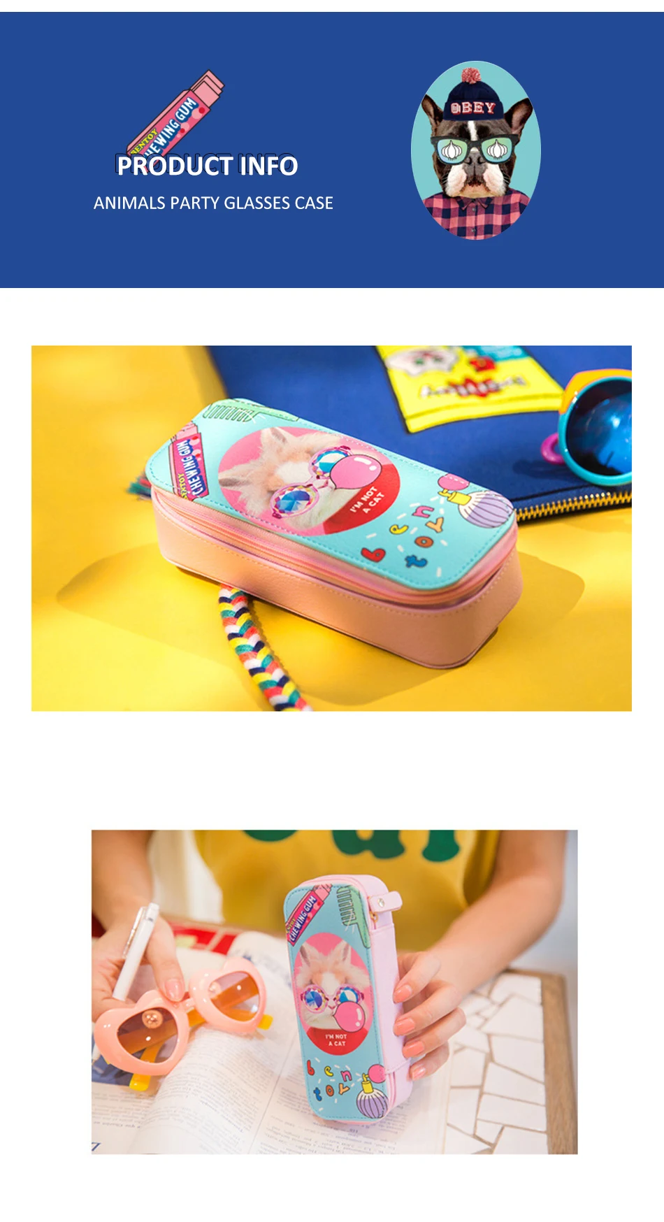 Футляр для очков QT2988 женский дорожный из искусственной кожи с мультяшным рисунком в стиле Харадзюку, защитный держатель, портативный бокс, аксессуары для очков
