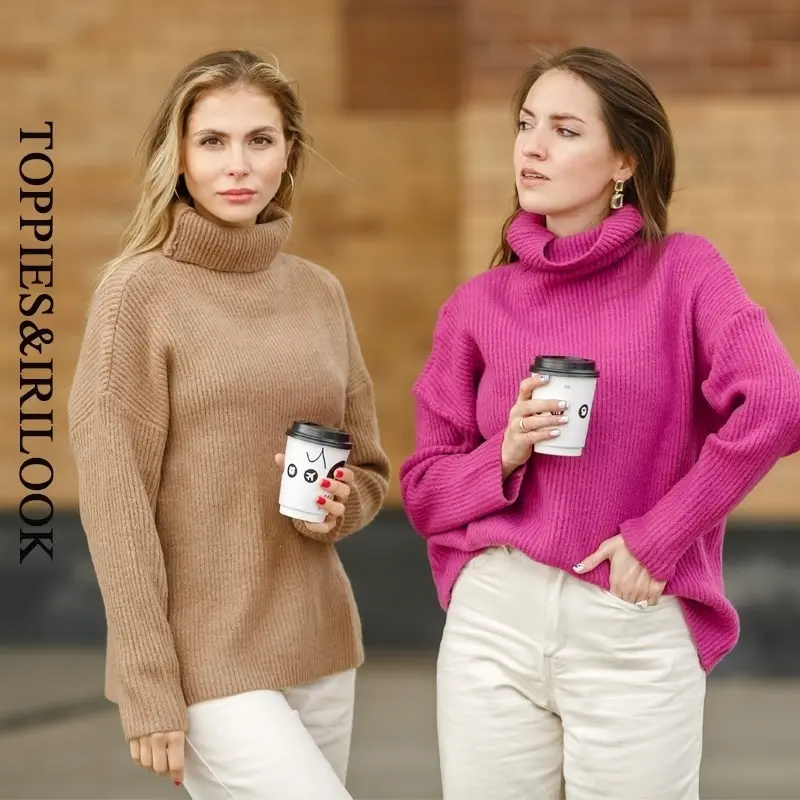 Пуловер женский вязаный с высоким воротом, Осень-зима 2021