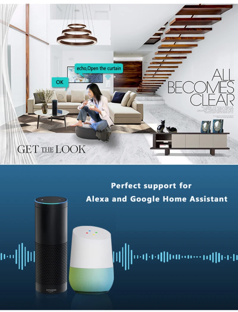 【Поддержка голосовой динамик управления】Коммутатор совместим с Alexa и Google Home Assistant, что позволяет