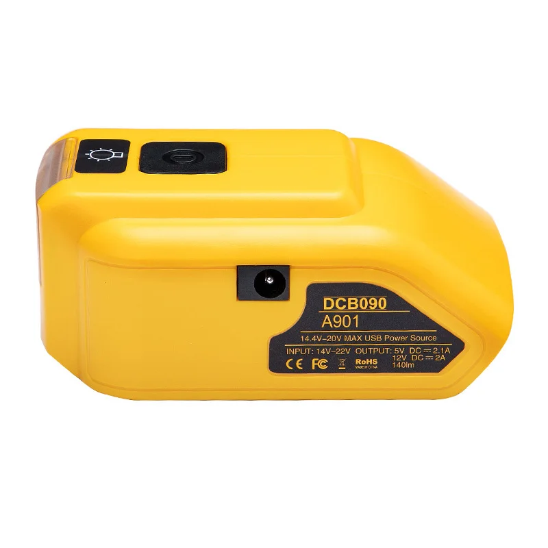 DCB090 для Dewalt 20 в, преобразователь литий-ионной батареи, USB-адаптер для зарядки, выход источника питания 5 в 2,1 А и 12 В 2 а с светодиодный 3 Вт