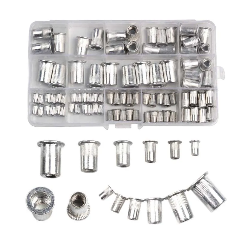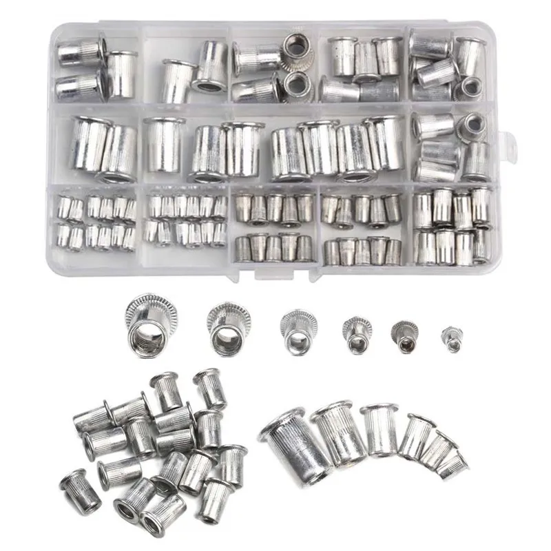 93 шт. алюминиевая заклепочная гайка M3 - M10 из алюминиевого сплава Rivnut с плоской головкой заклепки с резьбой вставки с заклепками