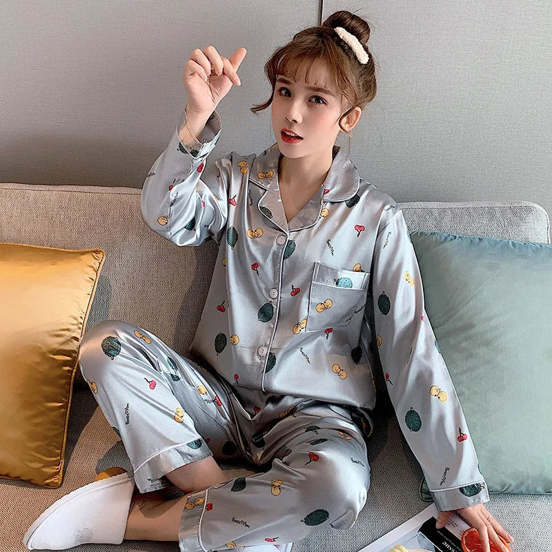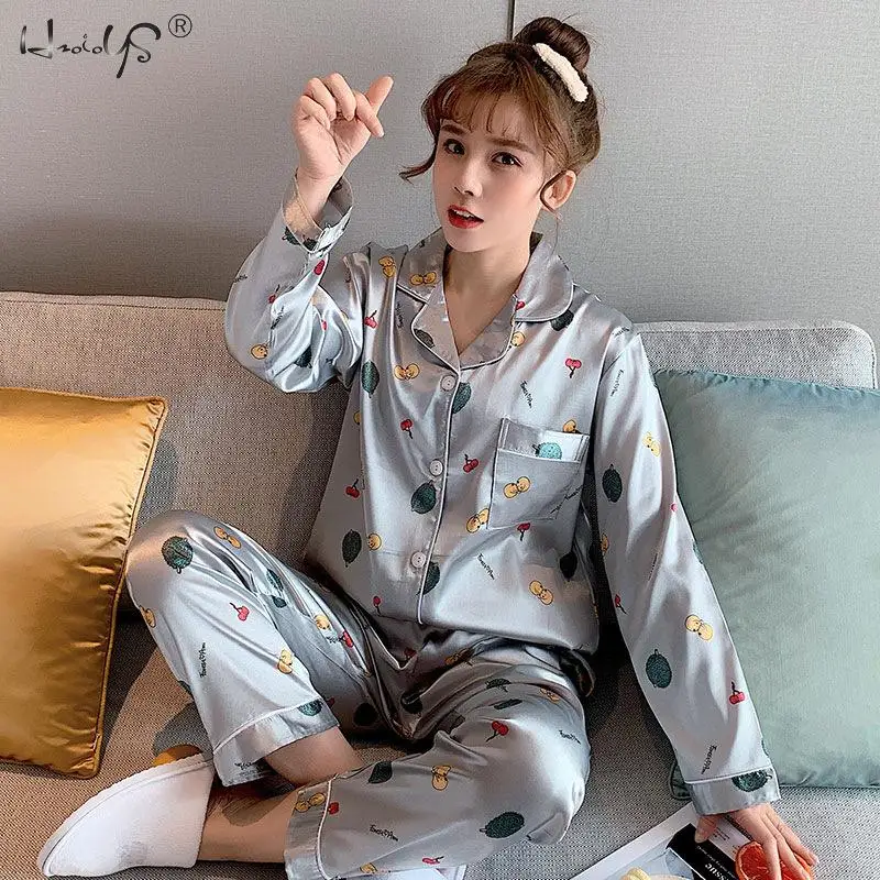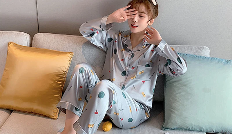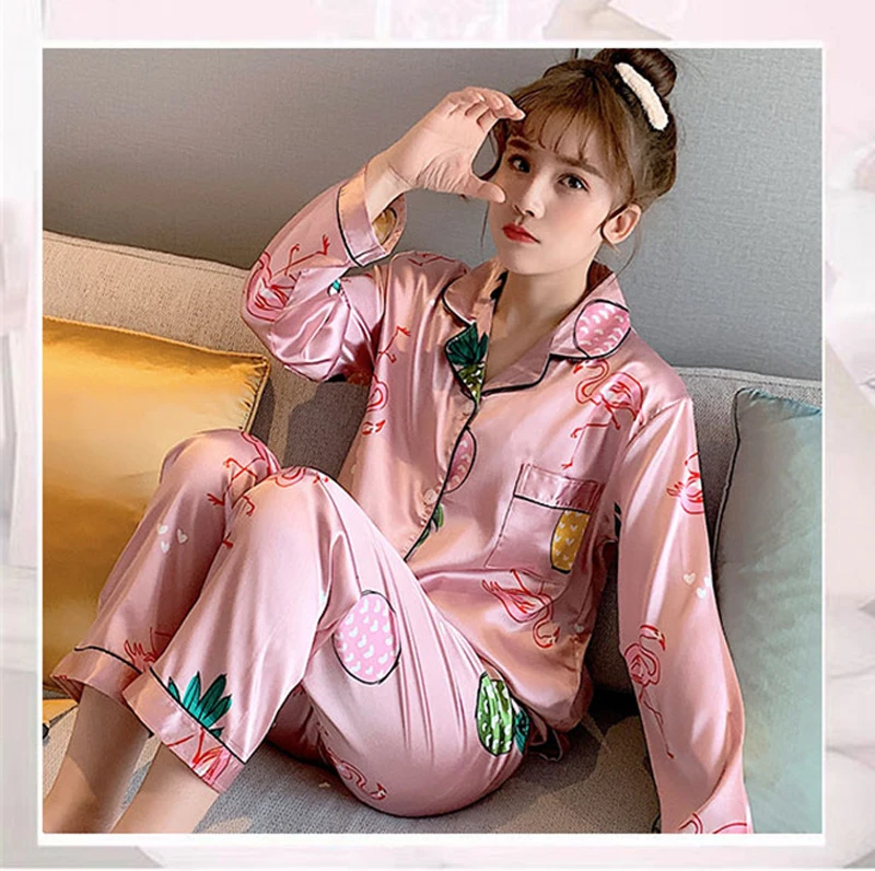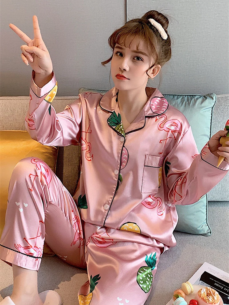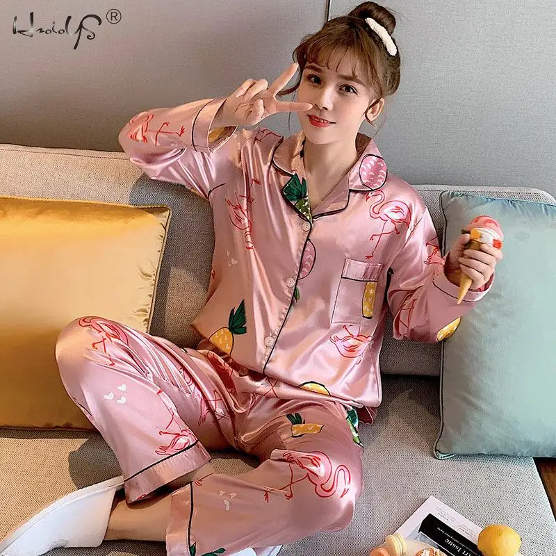 Женская женская пижама, одежда для сна, пижамы, атласная Шелковая пижама для женщин, комплект женских пижам, зимняя женская одежда