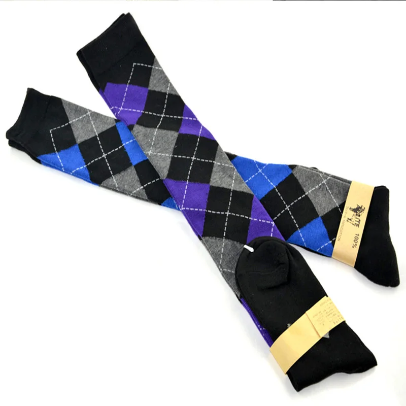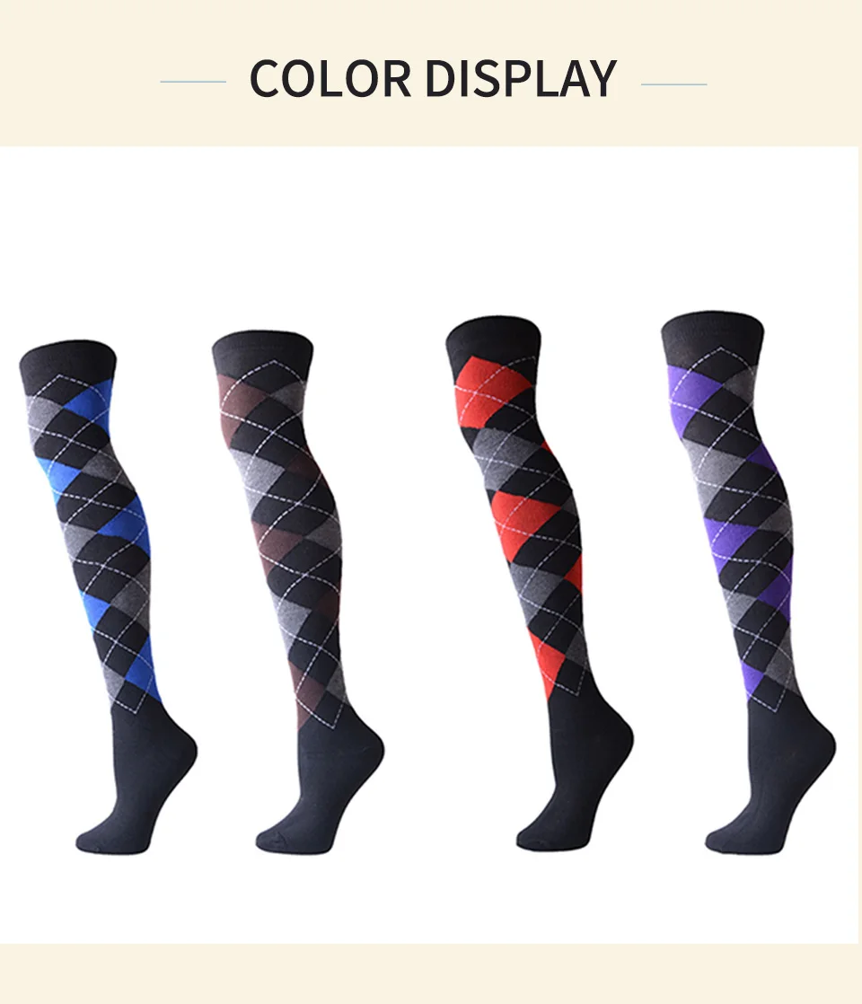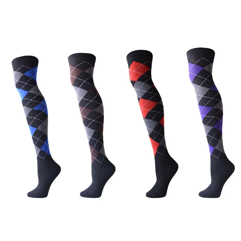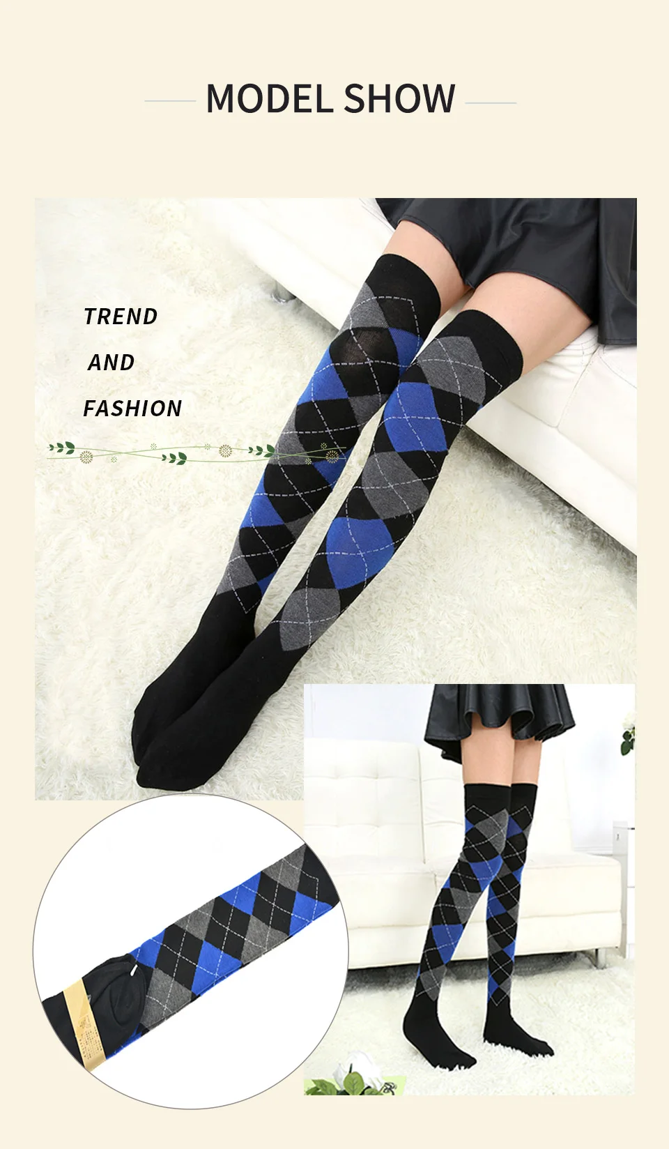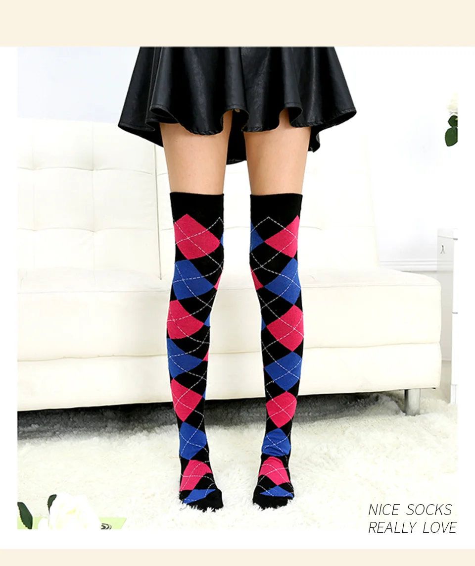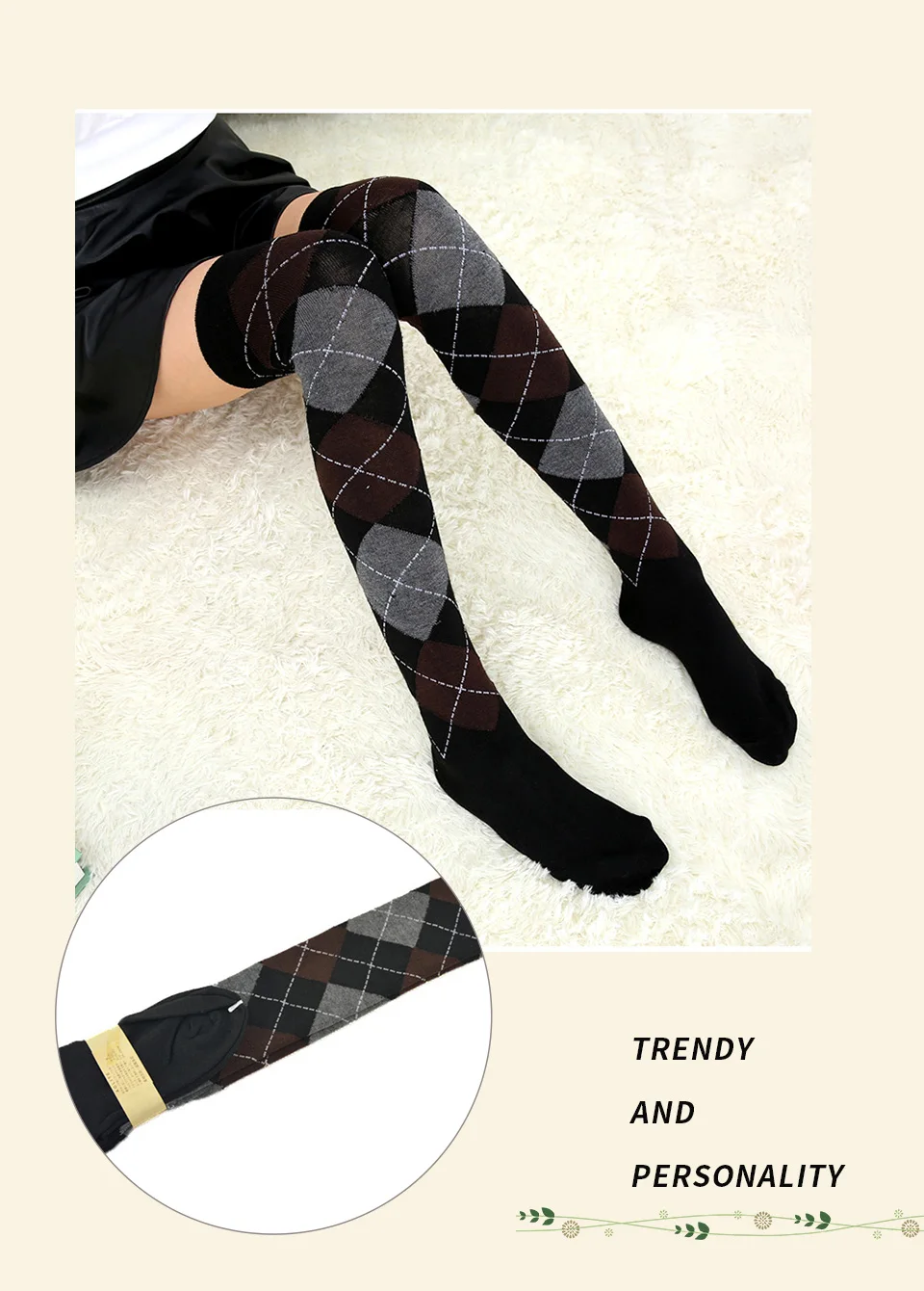 Чулки женские в клетку, Дышащие Модные, выше колена, выше колена, в клетку со стразами, с забавной разноцветный чулок, на осень