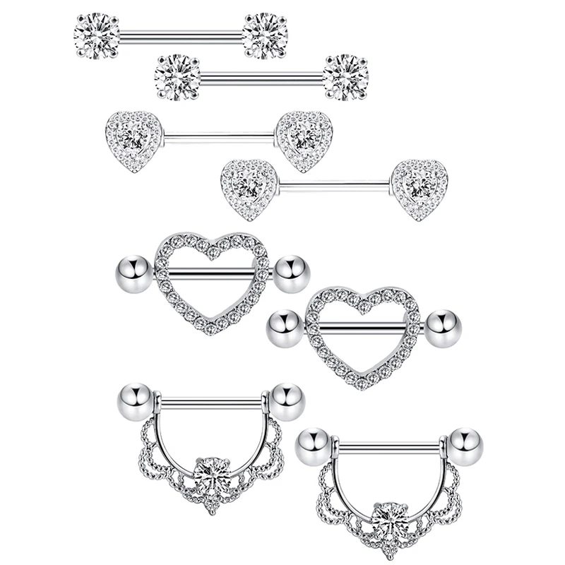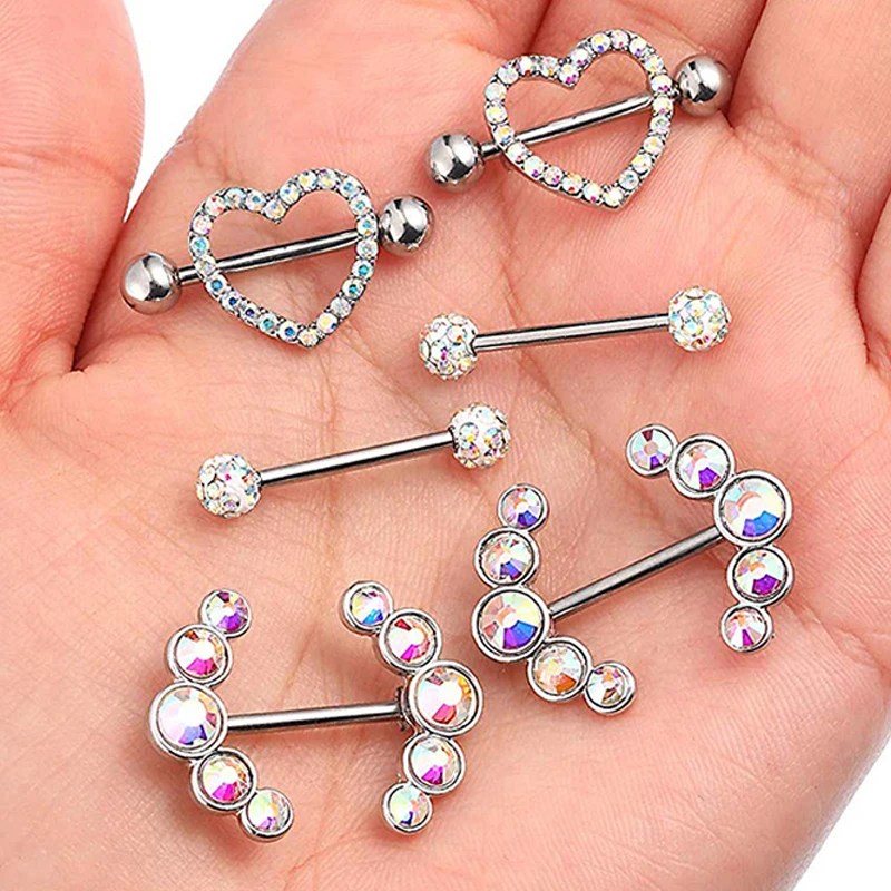 Кольца-штанги из нержавеющей стали для женщин и девушек, пикантные набор для пирсинга в форме сердца, соска, язык, 14 г, ювелирные изделия для тела, штанги с фианитами, 4 пары