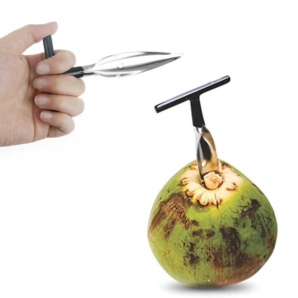 Прочная нержавеющая сталь гарантирует, что инструменты не повредят вас при пробовании пресной кокосовой воды.