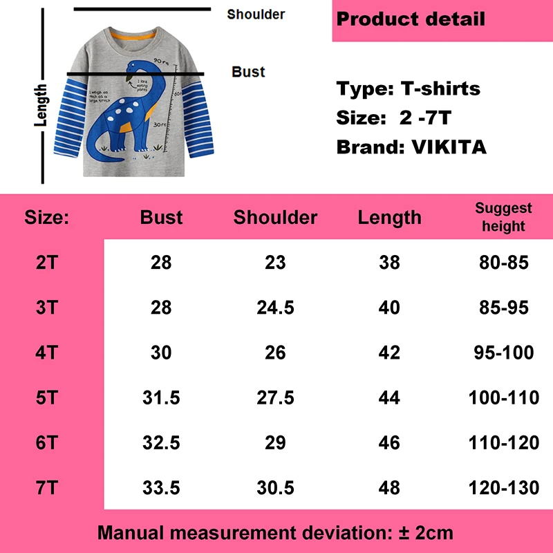 VIKITAдетская одежда для девочек; Футболки с длинными рукавами для маленьких детей; Футболки для мальчиков; Детская футболка с рисунком динозавра; Повседневная одежда