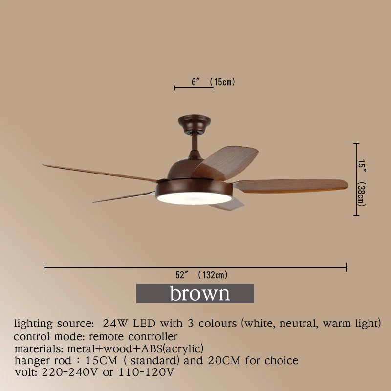 Современный потолочный вентилятор WPD, лампы коричневого цвета с пультом дистанционного управления, подходят для столовой, спальни, ресторана