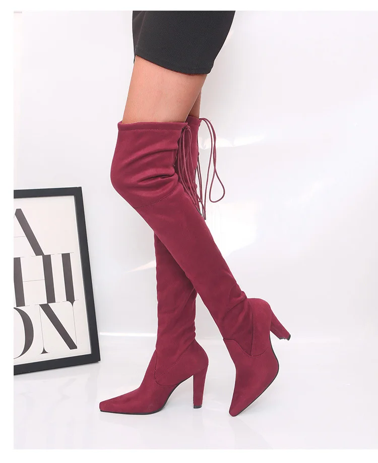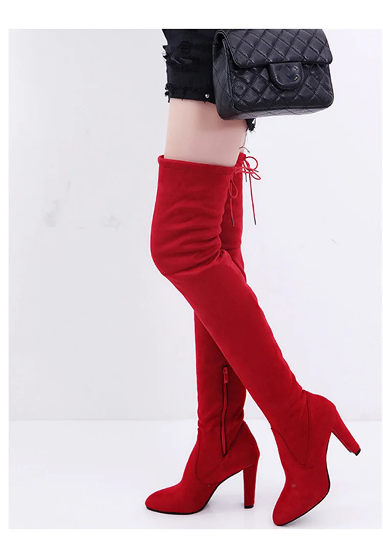 Высокие сапоги до бедра из искусственной замши осенне-зимняя обувь женские сапоги пикантные ботфорты на высоком каблуке Feminino Zapatos размера плюс 35-43