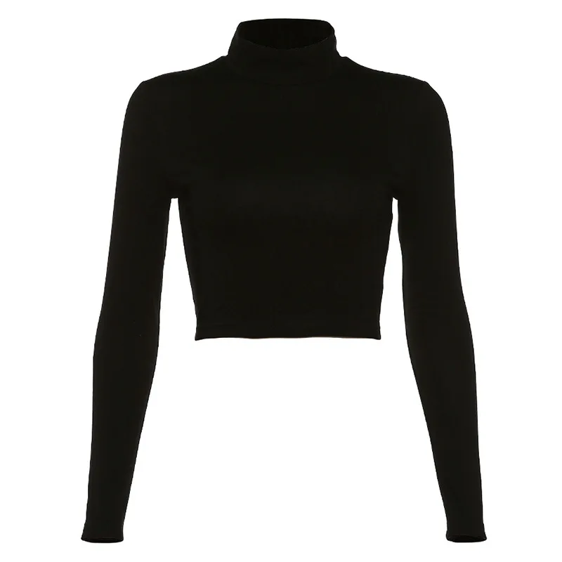 Heeatal, винтажные женские футболки с длинным рукавом, с высоким воротом, с длинным рукавом, сексуальные, с лямкой на шее, облегающая женская футболка, Mujer Camisetas Goth