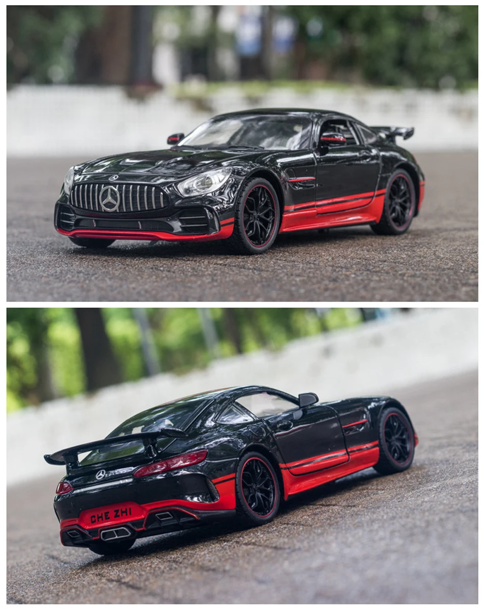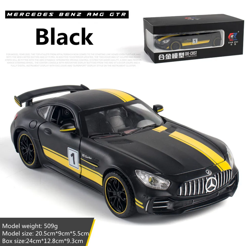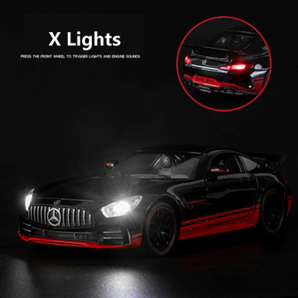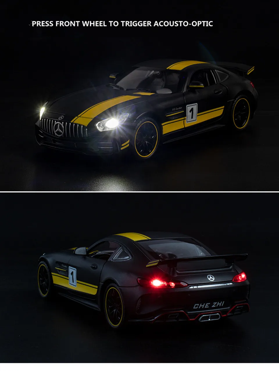 Модель спортивного автомобиля AMG GTR, литый под давлением, со звуком и светом, модель игрушечного автомобиля для детей, коллекционная игрушка, подарок, 124