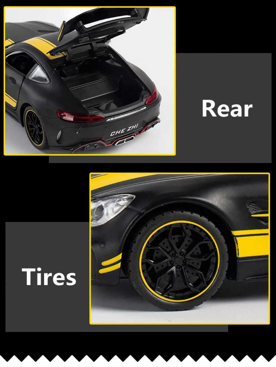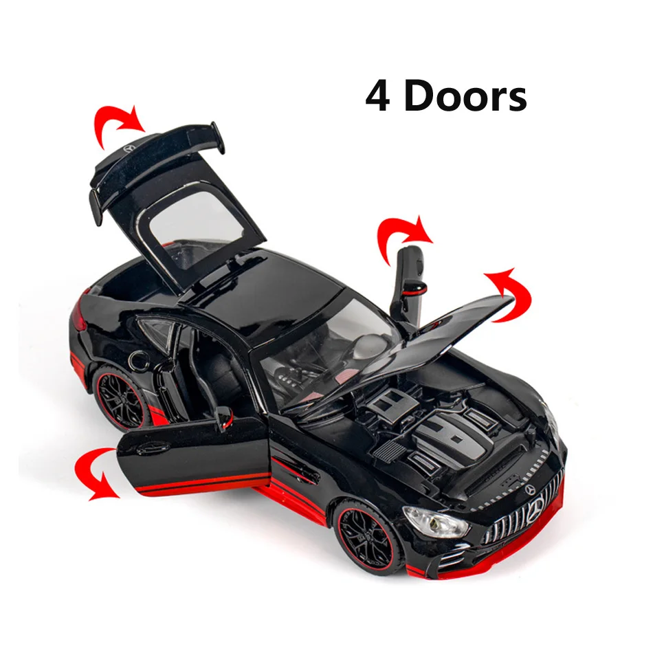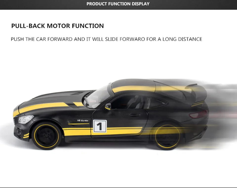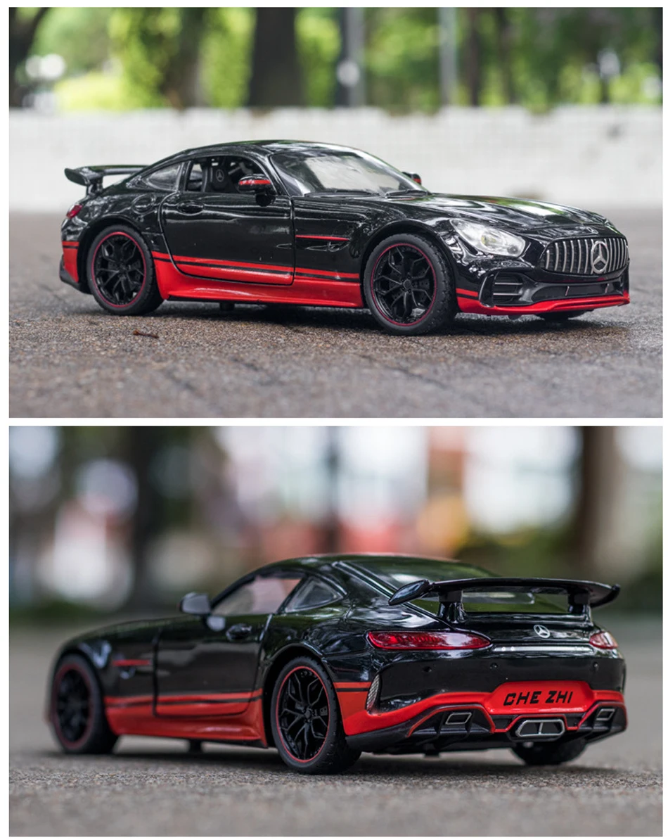 Модель спортивного автомобиля AMG GTR, литый под давлением, со звуком и светом, модель игрушечного автомобиля для детей, коллекционная игрушка, подарок, 124