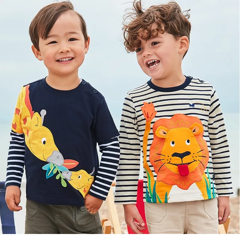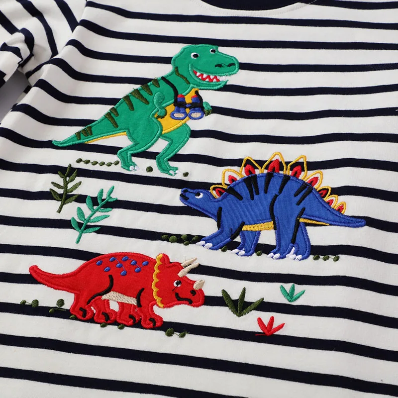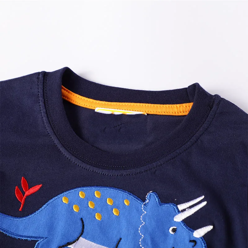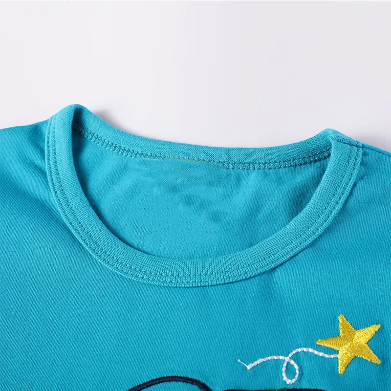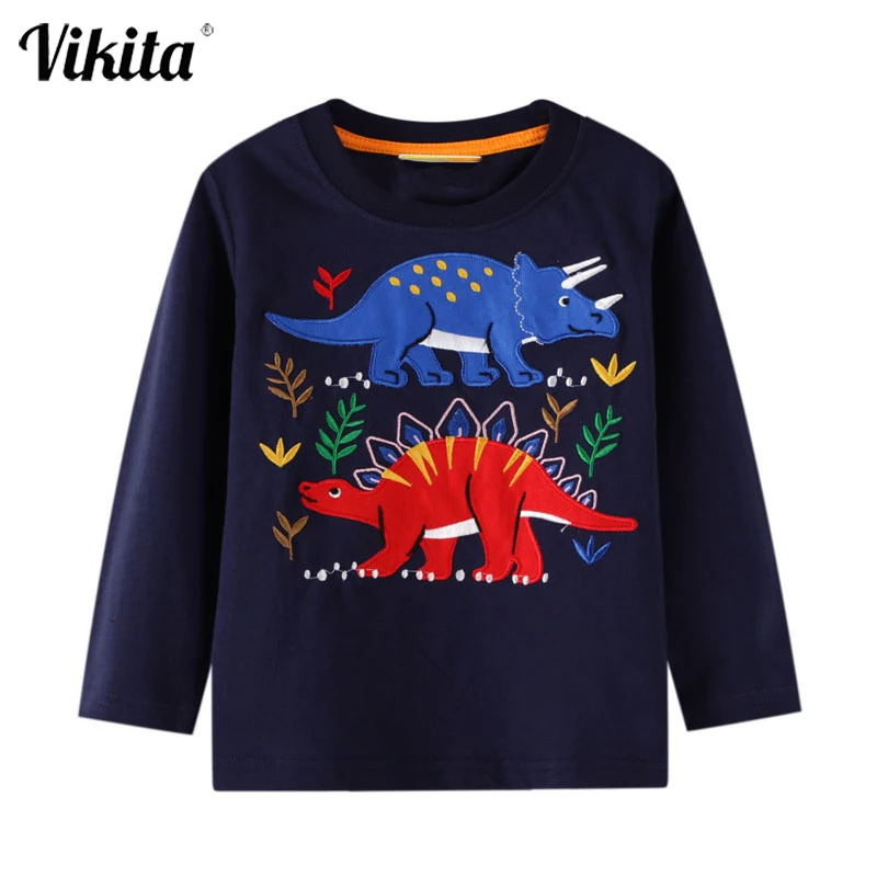 VIKITAдетская осенне-зимняя футболка; Одежда с аппликацией в виде динозавра для маленьких мальчиков; Детские футболки с круглым вырезом и рисунком; Детская одежда