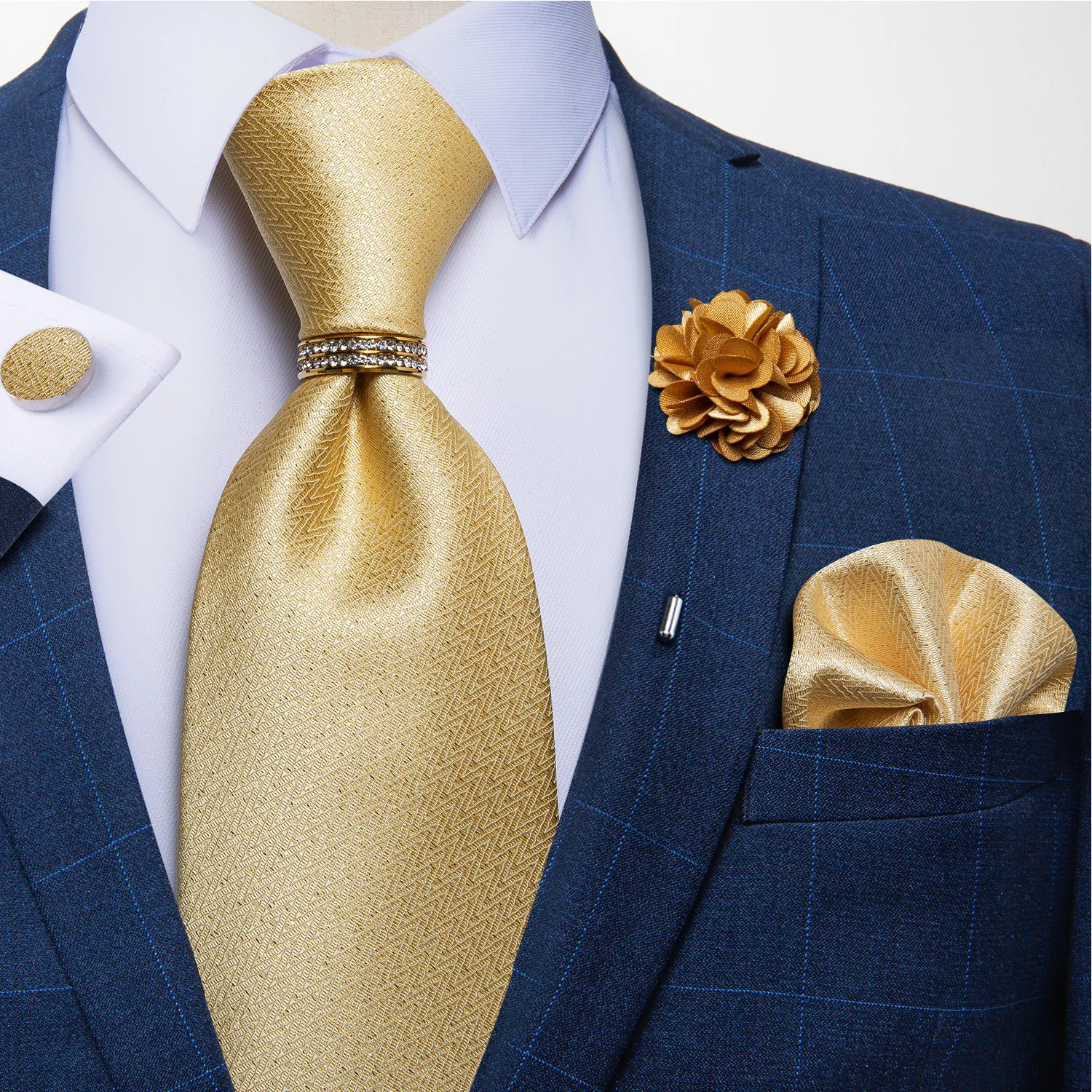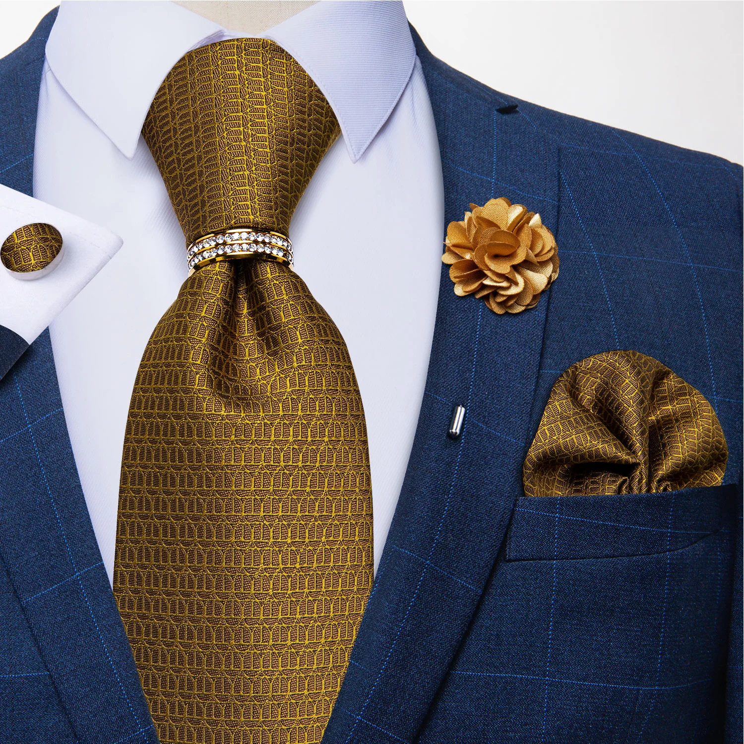 Товар содержит: 1 * галстук + 1 * платок + 1 * брошь + 1 пара * запонки + 1 * галстук кольцо