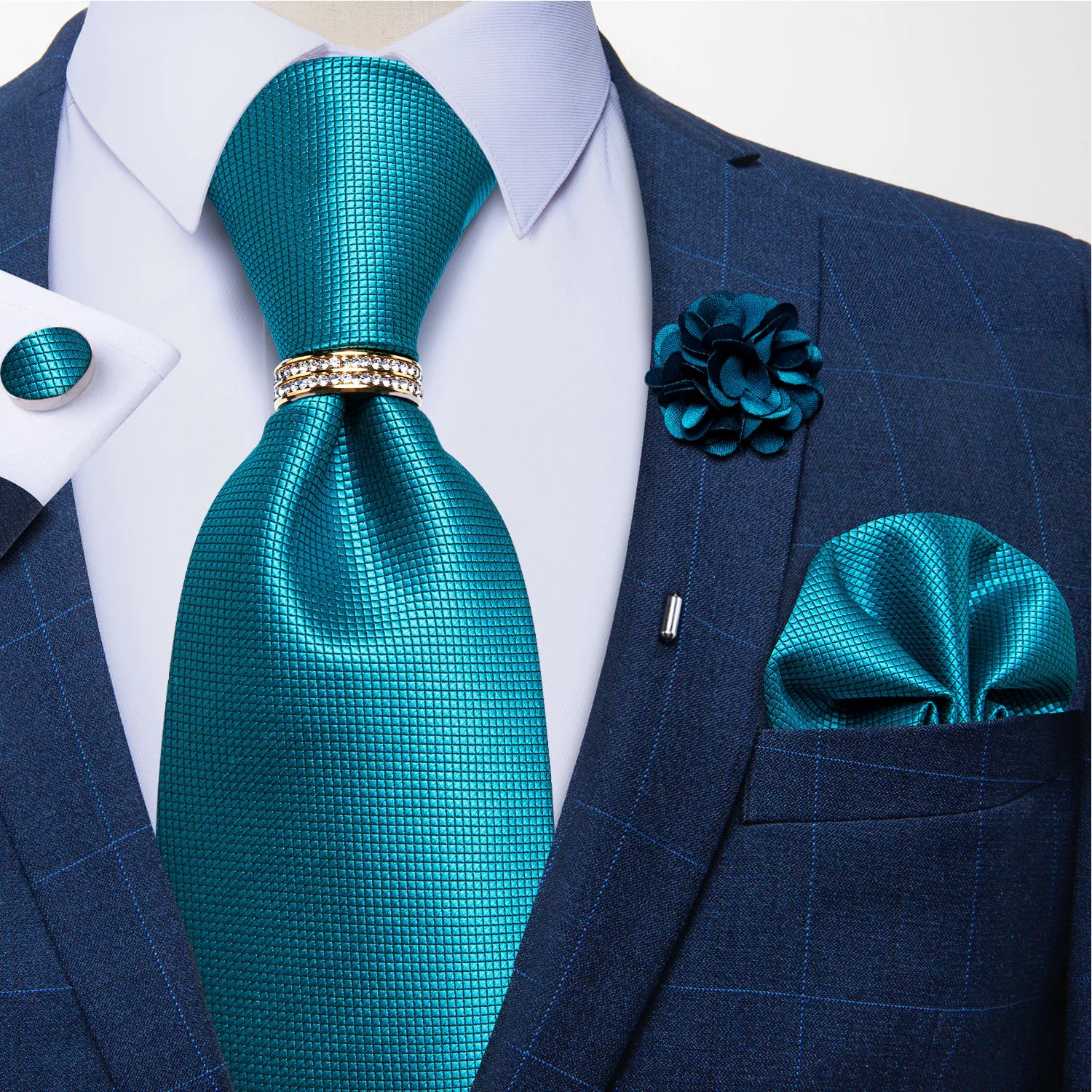 Colorteal blue solid tie set