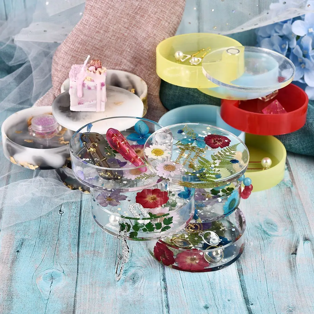 Многоуровневая Подставка для украшений сделай сам, коробка для хранения, силиконовая форма, перекрывающаяся вращающаяся шкатулка для украшений, форма из эпоксидной смолы