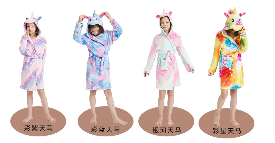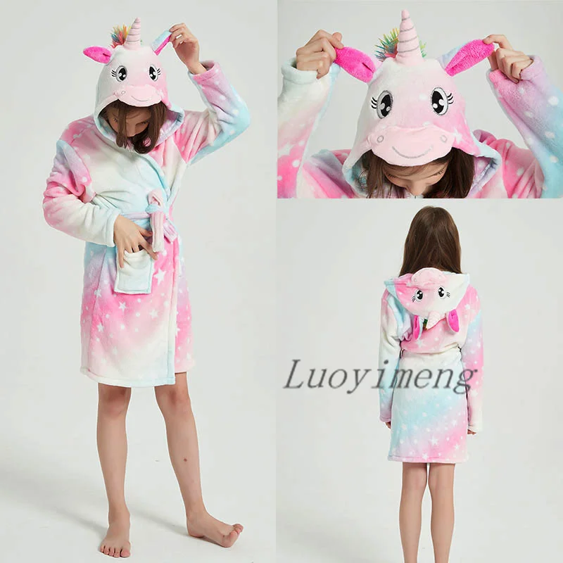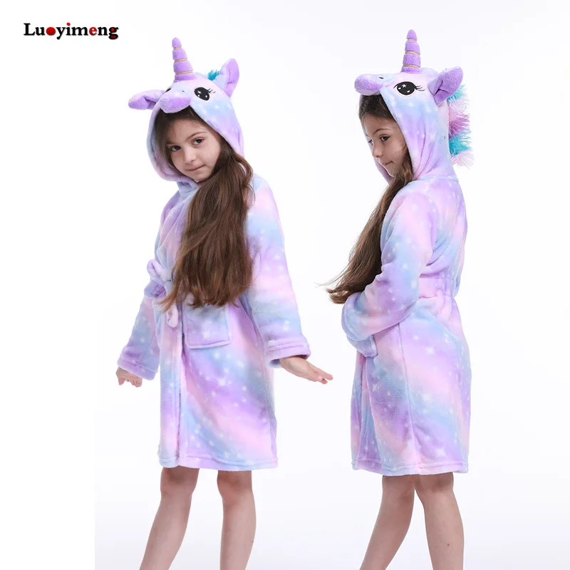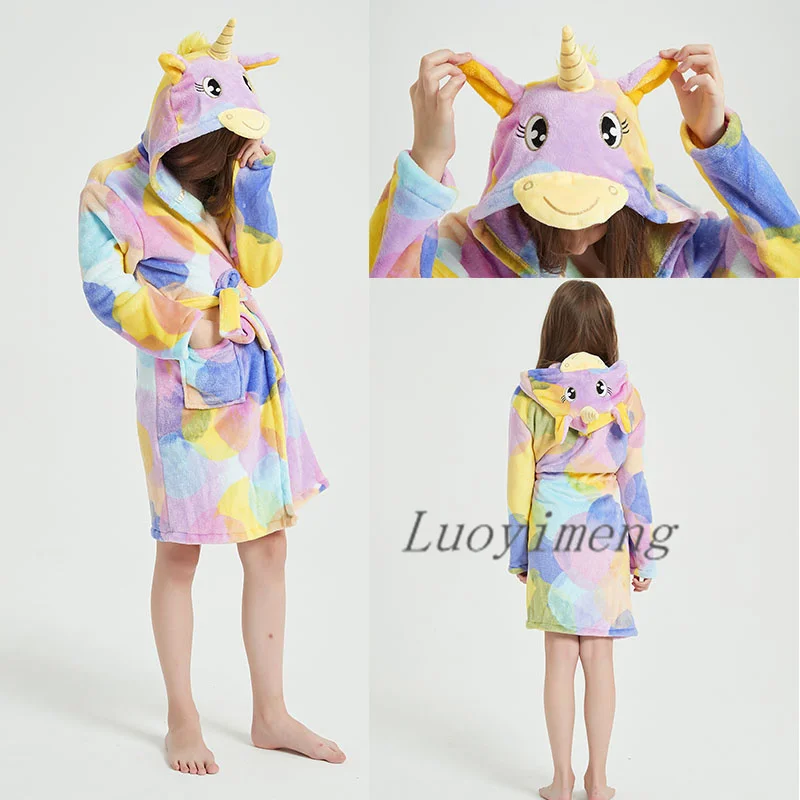 Банный халат для девочек и мальчиков, зимние фланелевые халаты-кигуруми в виде единорога, Детские Банные халаты, пляжные полотенца, теплая Пижама, одежда для сна, детское ночное платье