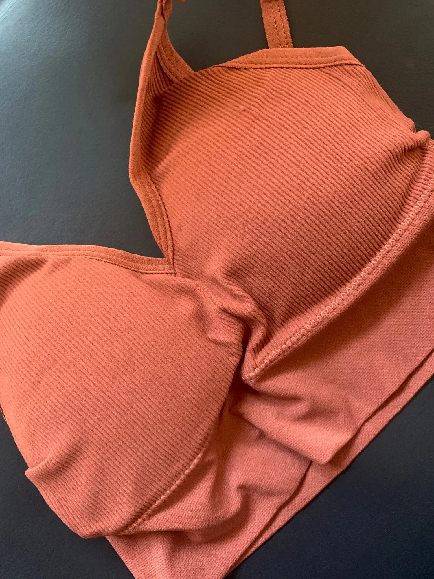 Доставка очень долгая, но Топ потрясающий. Не очень толстая подкладка. Подходит очень лестно, Красивый Деревенский оранжевый цвет. Имеет низкую спинку, поэтому можно носить без разных платьев. В целом отличная покупка. Хотя придется сказать, это не будет так хорошо для тех, кто размер бюстгальтера больше, чем чашка B. Идеально подходит для женщин с маленькой грудью, в противном случае он будет постоянно расти и будет предлагать 0 поддержки.